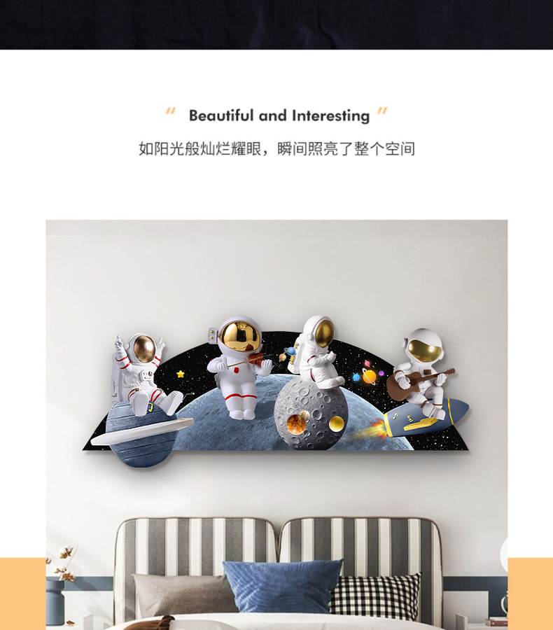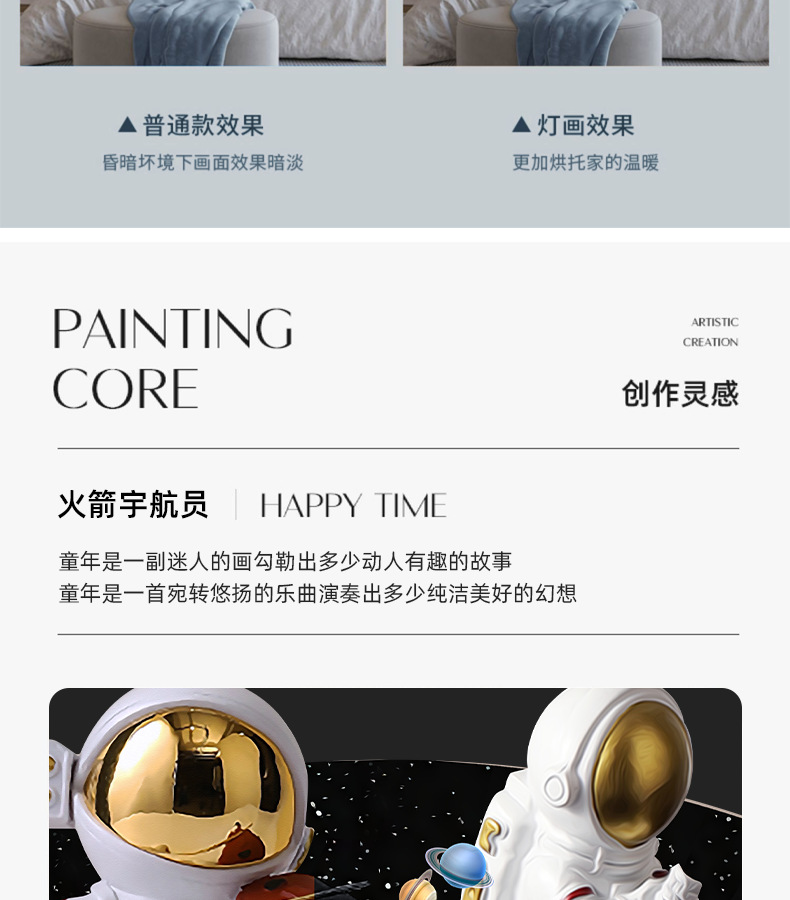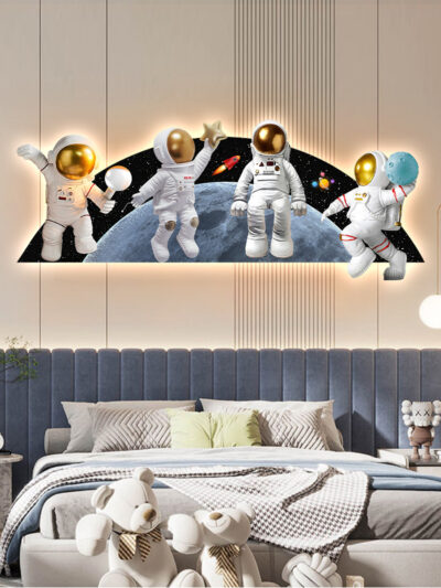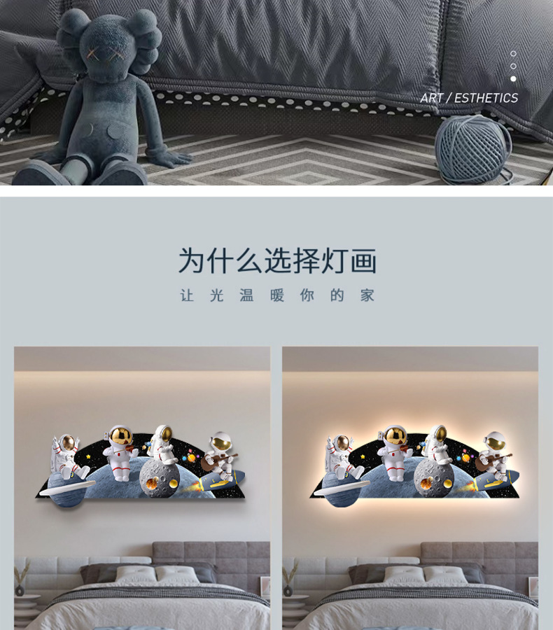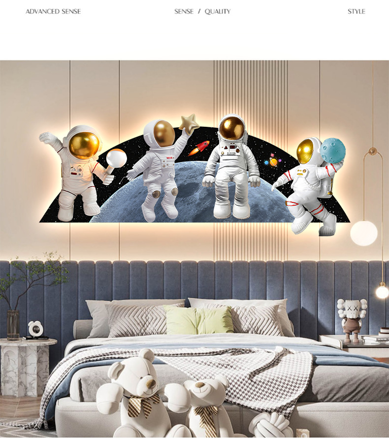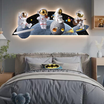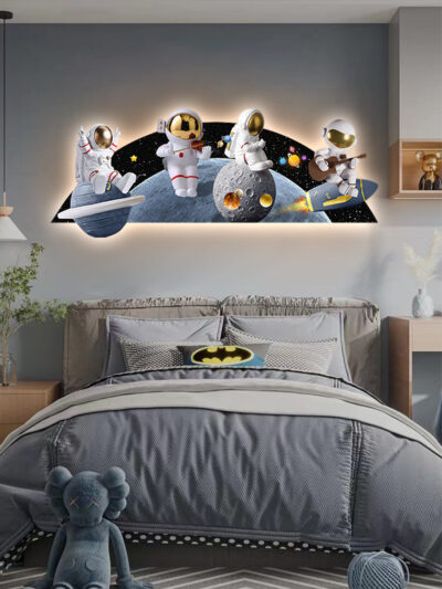 Phim hoạt hình phi hành gia phòng trẻ em bức tranh trang trí bức tranh đèn LED bức tranh ấm áp và đơn giản phòng cậu bé treo bức tranh phòng ngủ bức tranh phát sáng