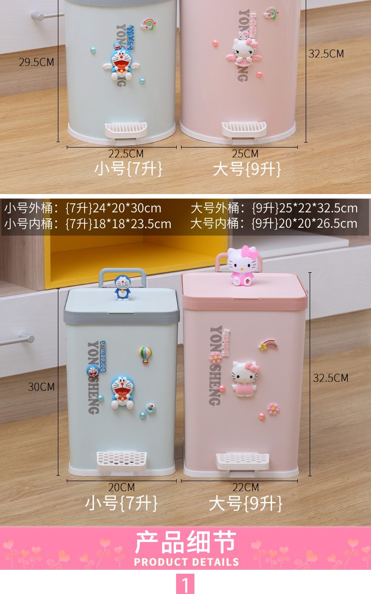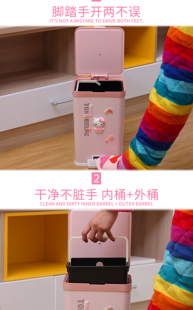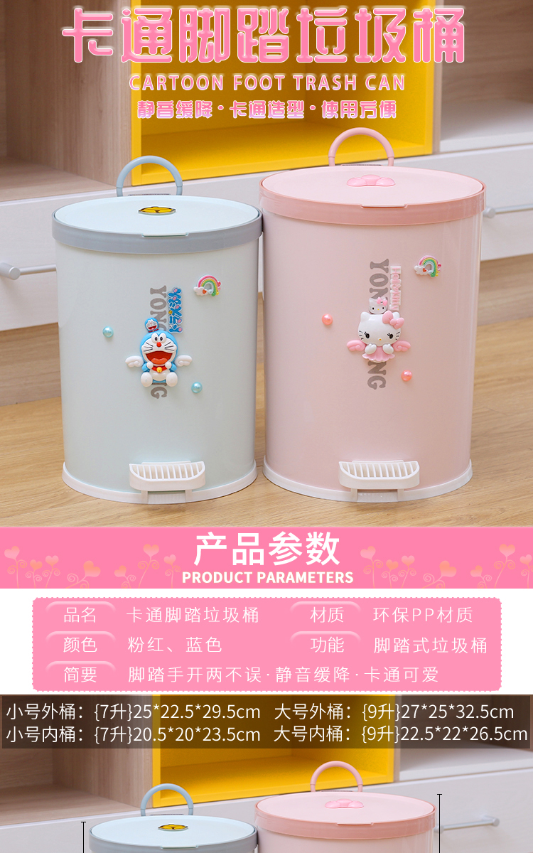 Phim hoạt hình thùng rác bước chân dễ thương nhà phòng khách phòng ngủ có nắp phòng tắm nhà vệ sinh bàn đạp loại sừng lớn hình vuông