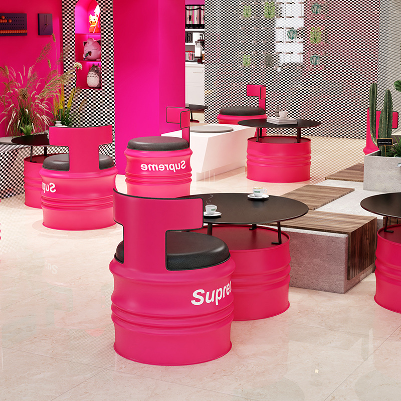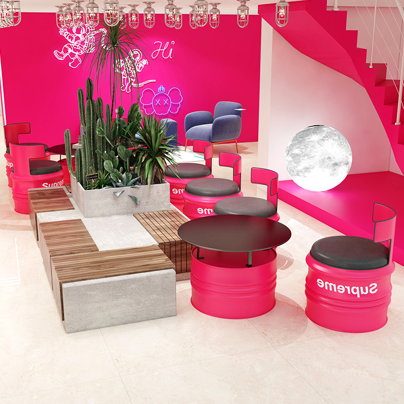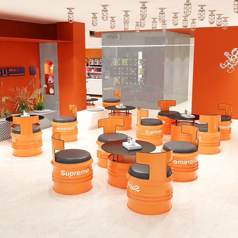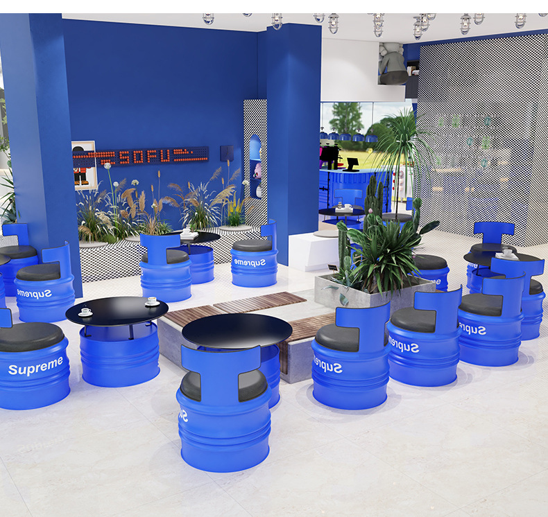 Phổ biến trên Internet cửa hàng thời trang giản dị phong cách công nghiệp sáng tạo dầu trống sàn sofa quán cà phê quán trà sữa quầy bar bàn ghế kết hợp