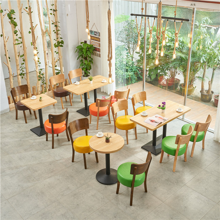phổ biến trên Internet quán trà sữa bàn ăn kết hợp ghế quán cà phê đơn giản món tráng miệng ăn nhẹ gian hàng burger ghế sofa gỗ nguyên khối thương mại