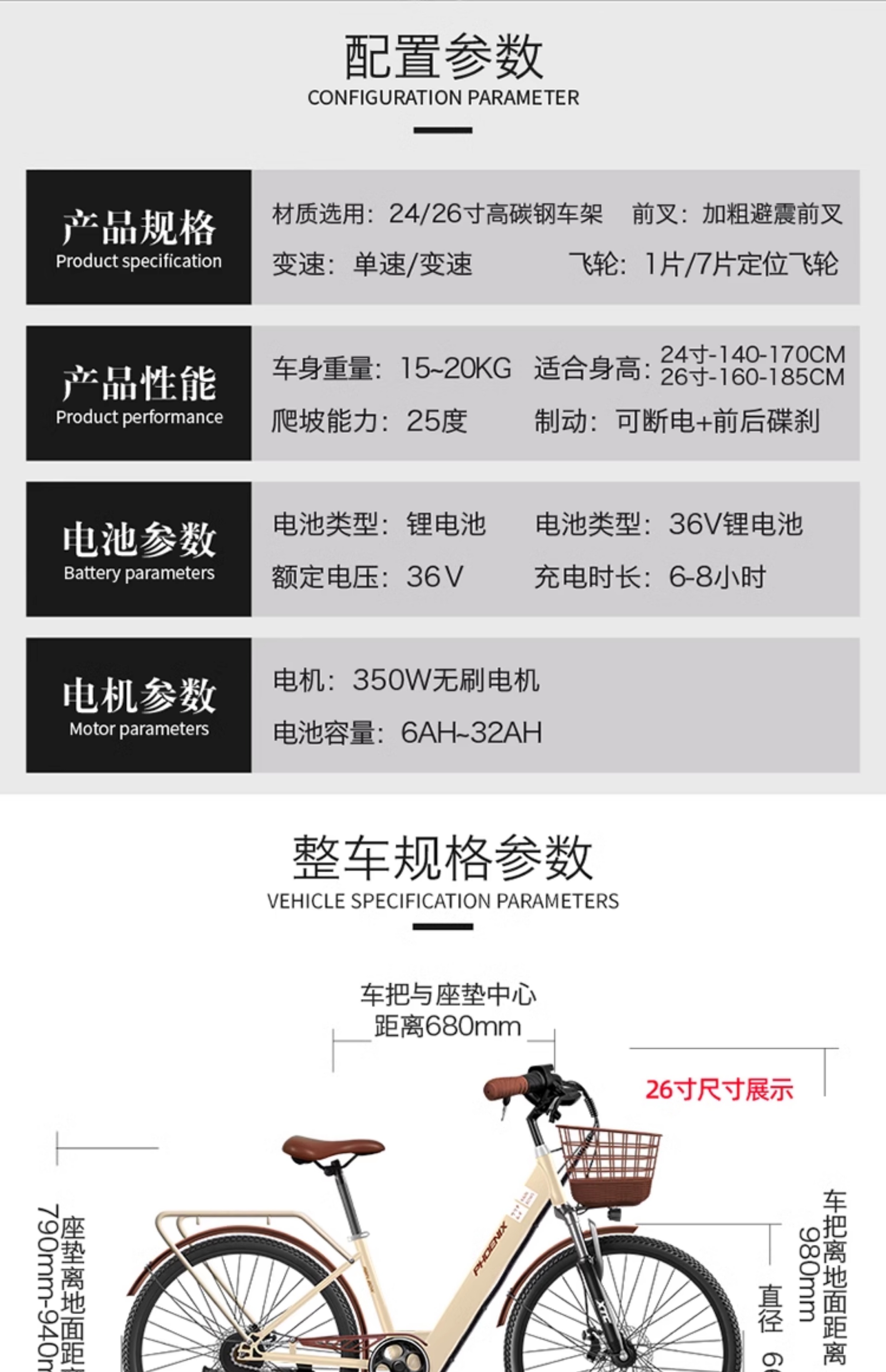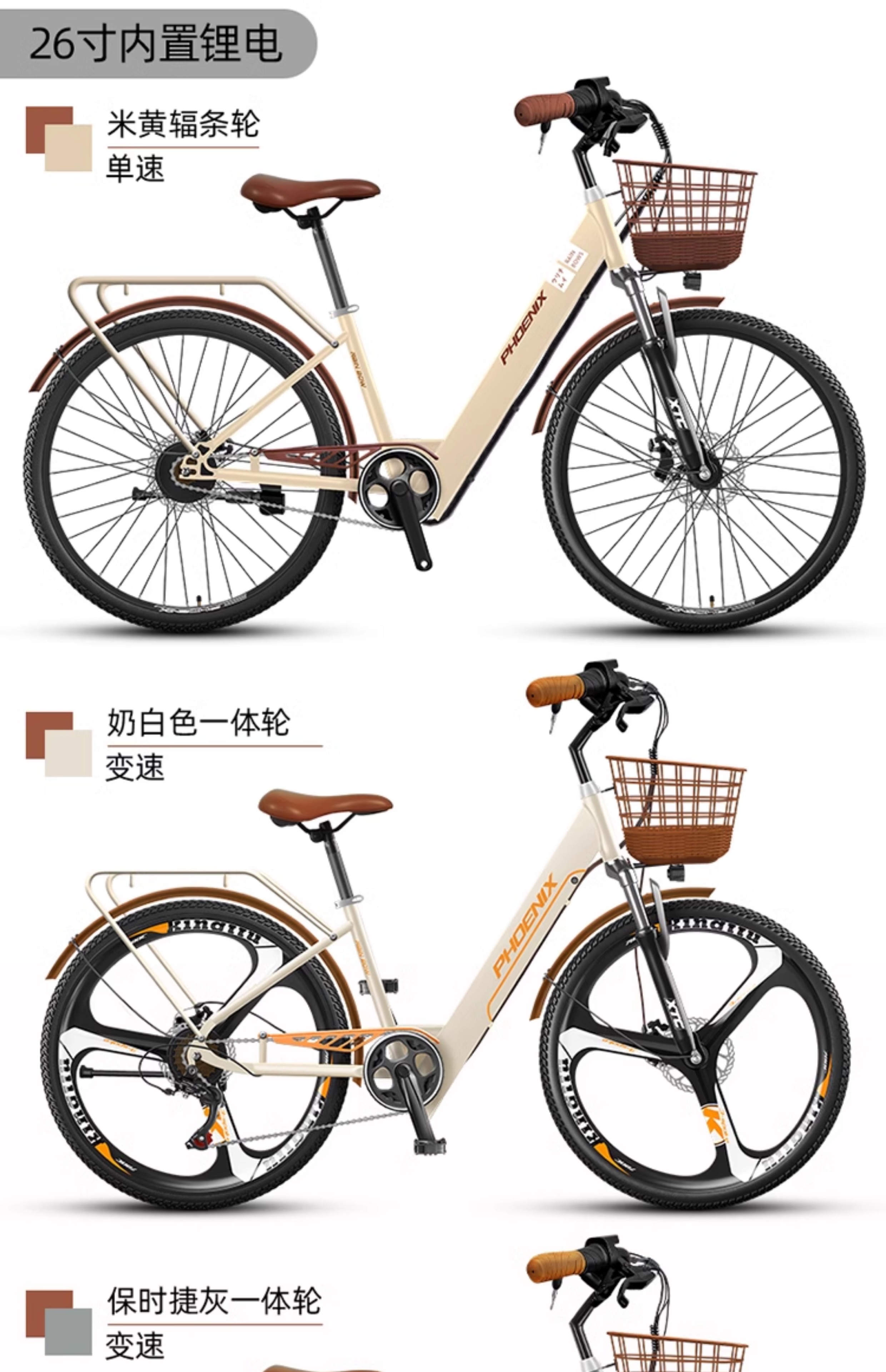 Phoenix 26 inch xe đạp điện tiêu chuẩn quốc gia mới pin lithium dành cho phụ nữ đi lại bằng pin hỗ trợ ánh sáng xe điện