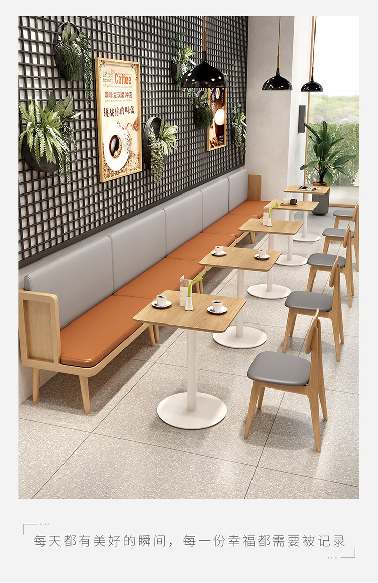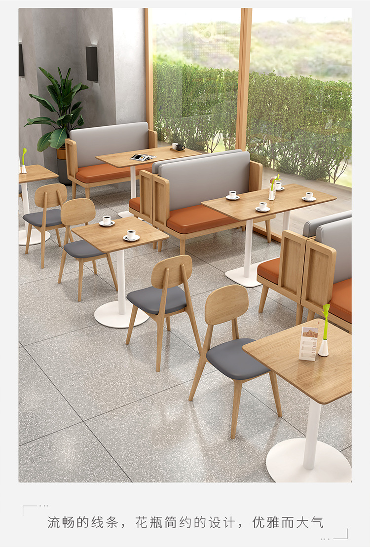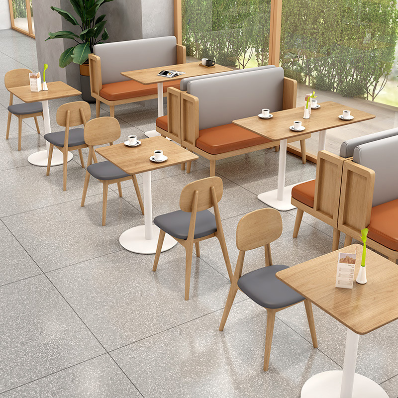 Phong cách bắc âu cửa hàng trà sữa bàn ghế nhà hàng thức ăn nhanh cửa hàng bánh mì kẹp thịt ăn nhẹ nhà hàng phương tây ghế gỗ cứng kết hợp bàn ghế sofa