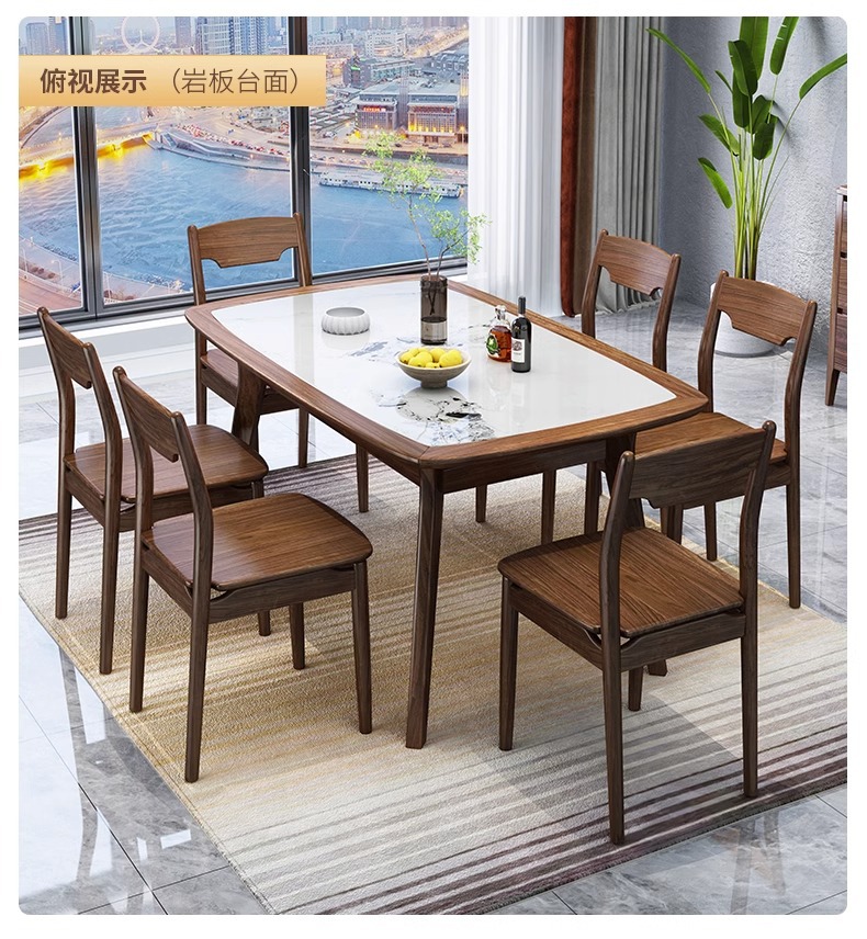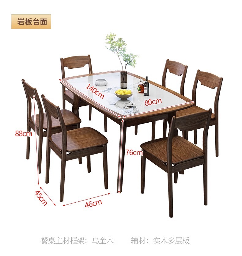 Phong cách Bắc Âu đá phiến bàn ăn, phòng nhỏ, nhà phòng ăn hình chữ nhật, ghế ăn kết hợp, nhà cho thuê đơn giản