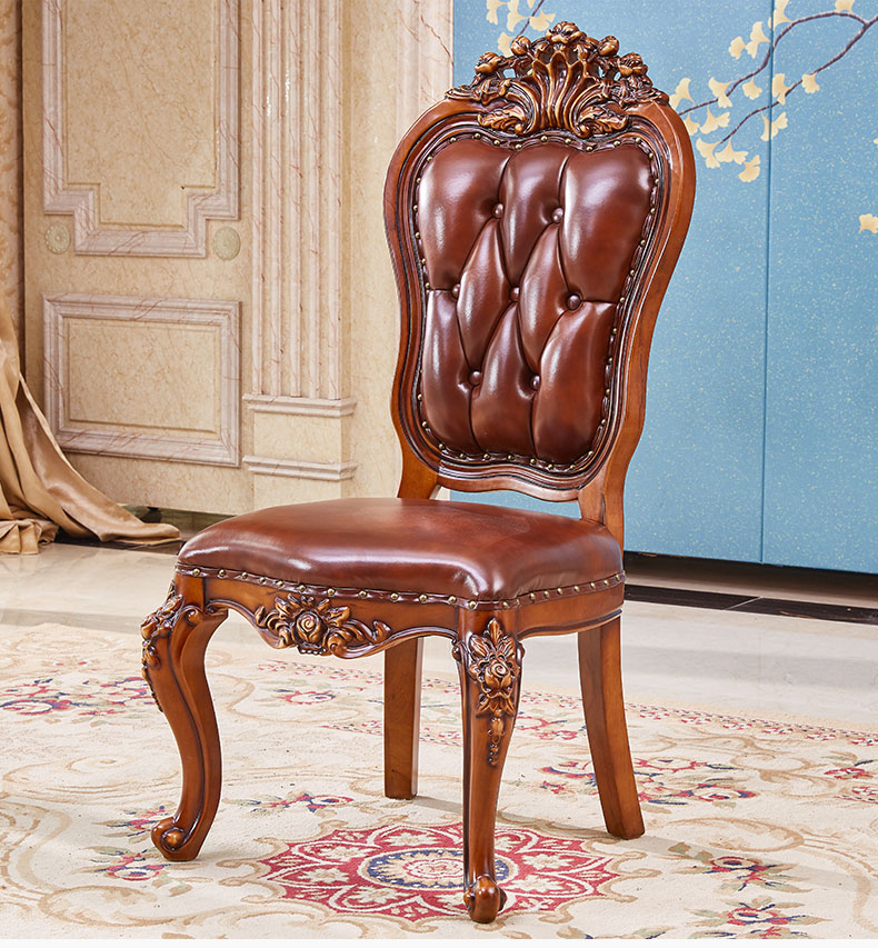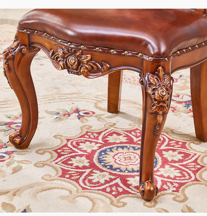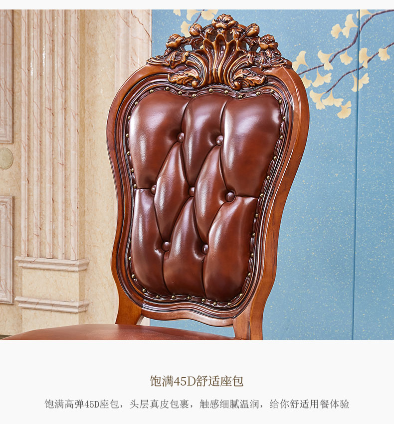 皮餐椅主体框架为优质橡木,接触面(座包跟前靠背)为优质真皮,非接触面(后靠背皮)为优质仿皮。