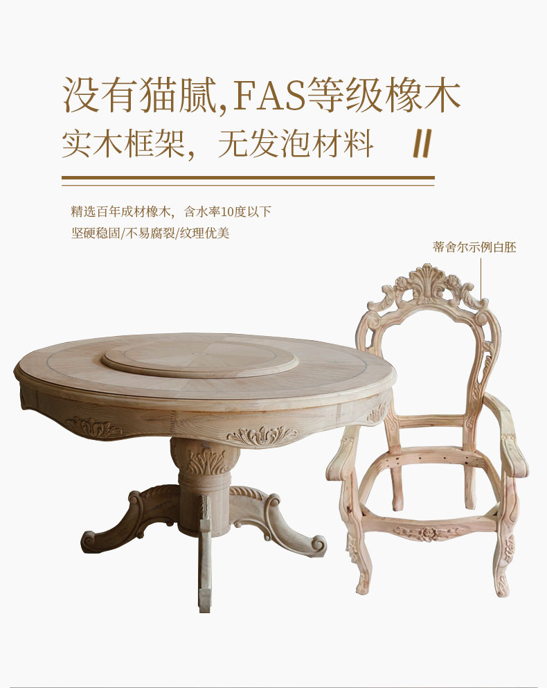 1. [-框架材质-]:餐桌主体框架和脚为优质橡木,其它部分为多层实木板.