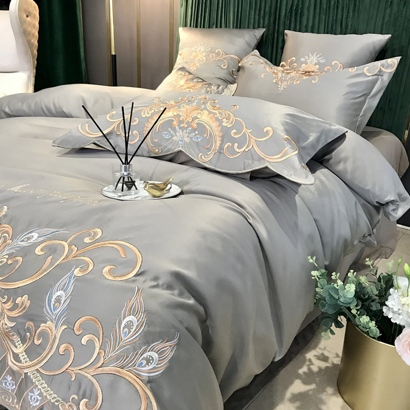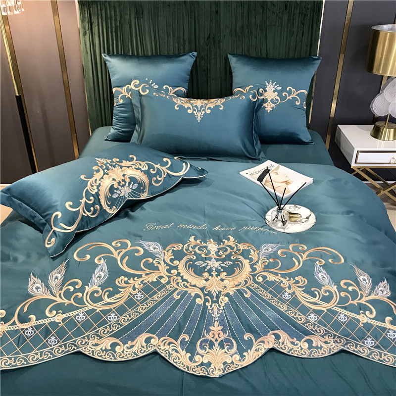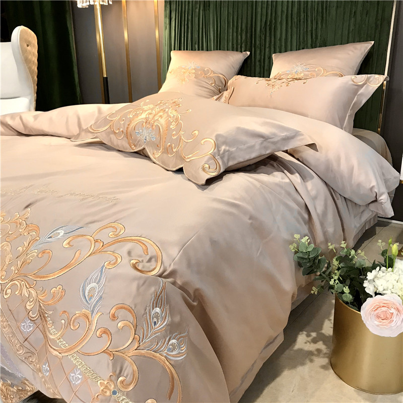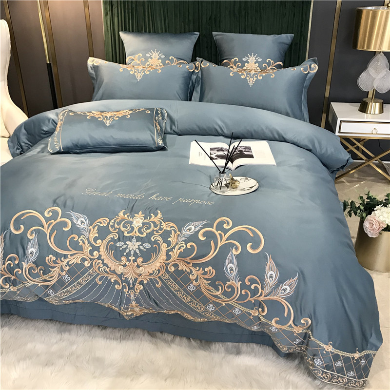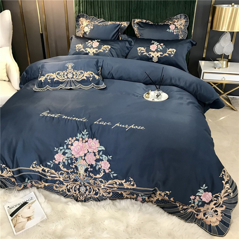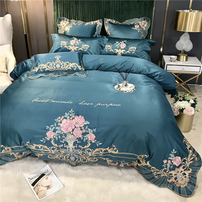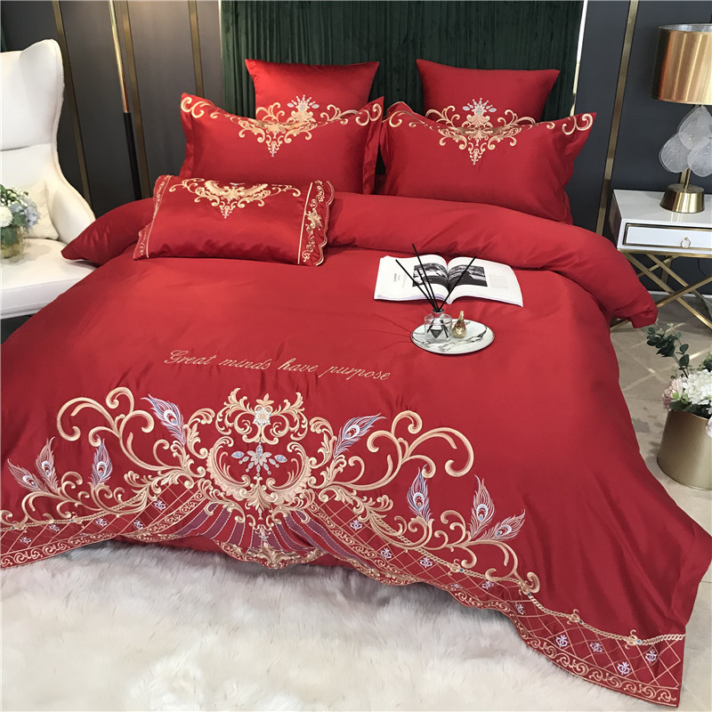 Phong Cách Châu Âu Cao Cấp Sang Trọng Thêu Cưới 4 Bộ Nguyên Chất Ga Giường Cotton Lụa Vỏ Chăn Cưới Chăn Ga Gối