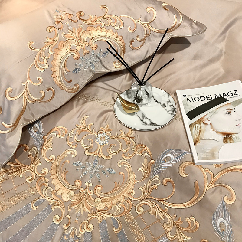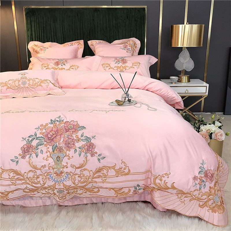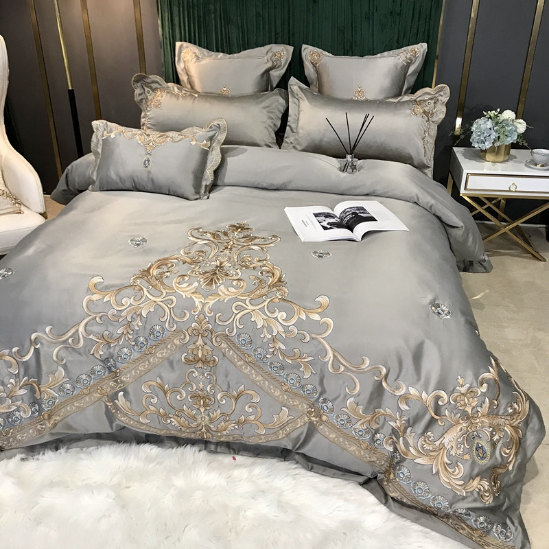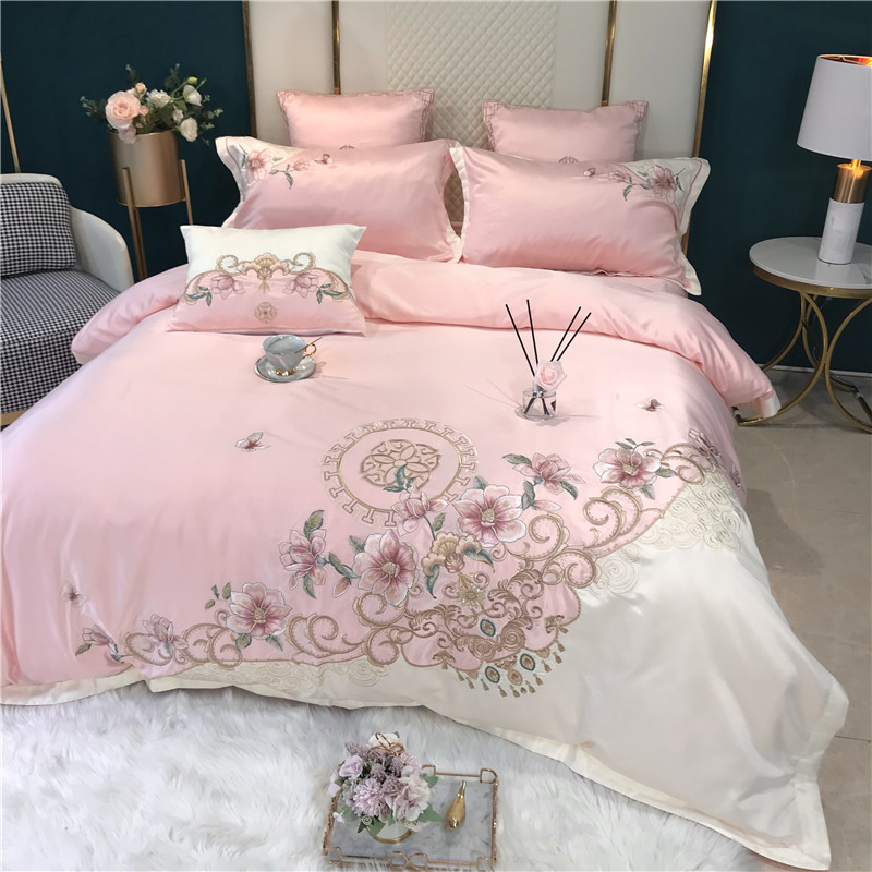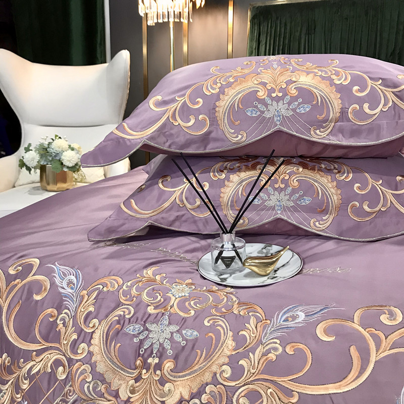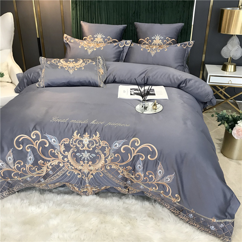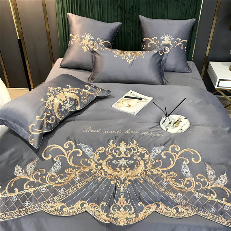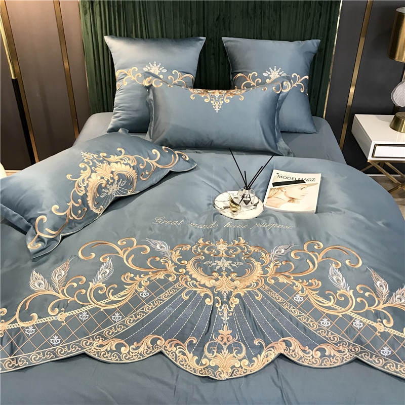 Phong Cách Châu Âu Cao Cấp Sang Trọng Thêu Cưới 4 Bộ Nguyên Chất Ga Giường Cotton Lụa Vỏ Chăn Cưới Chăn Ga Gối