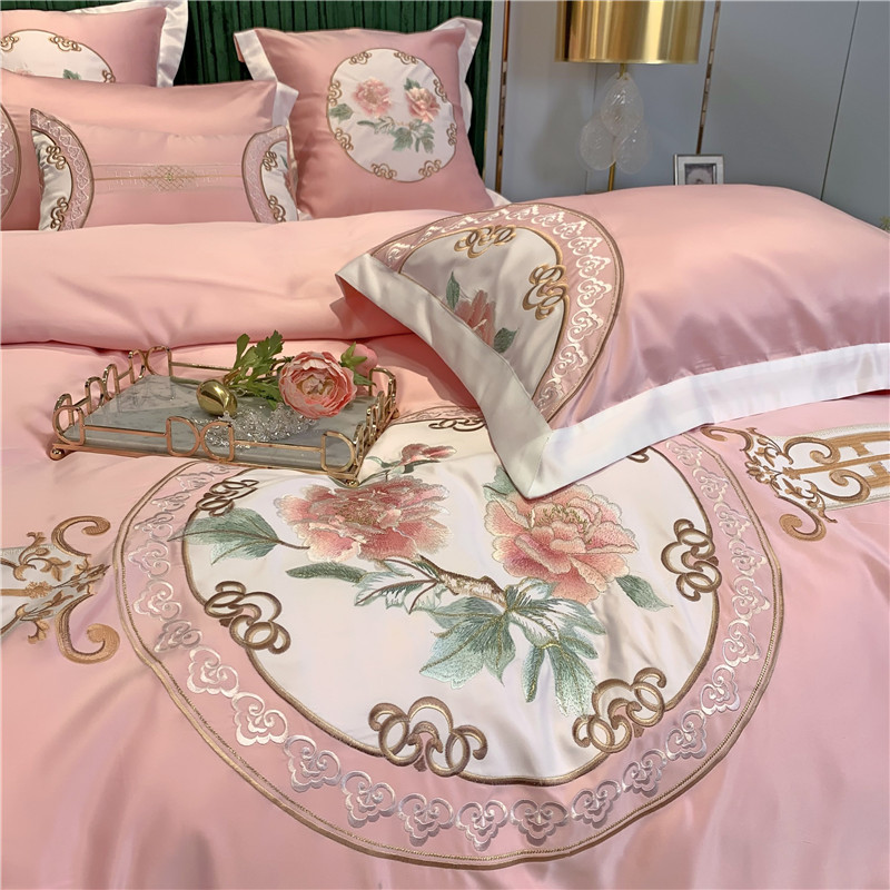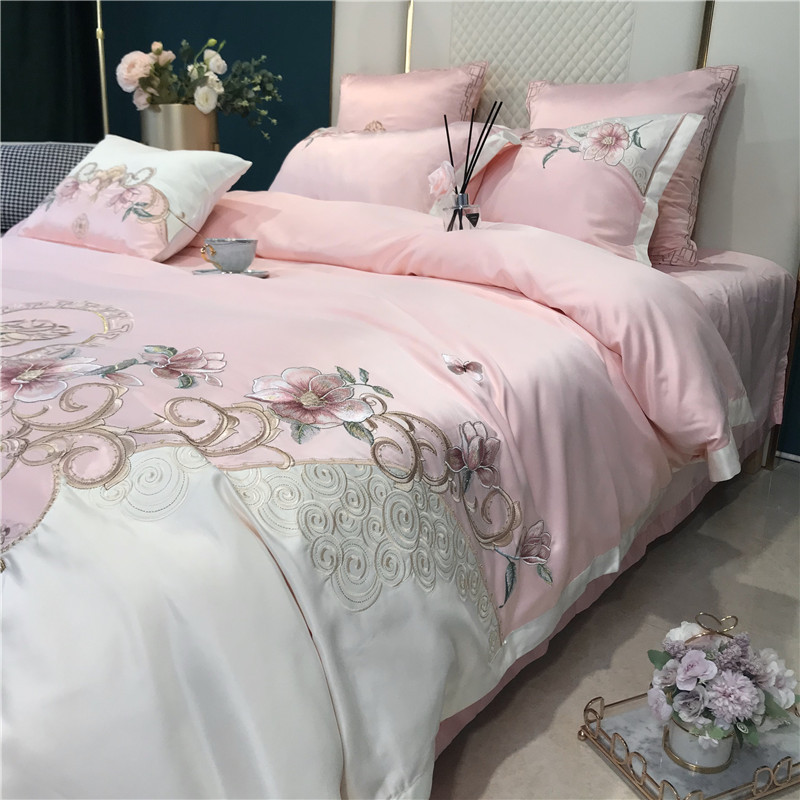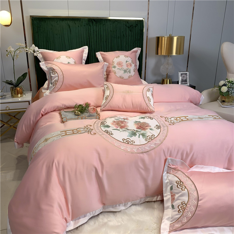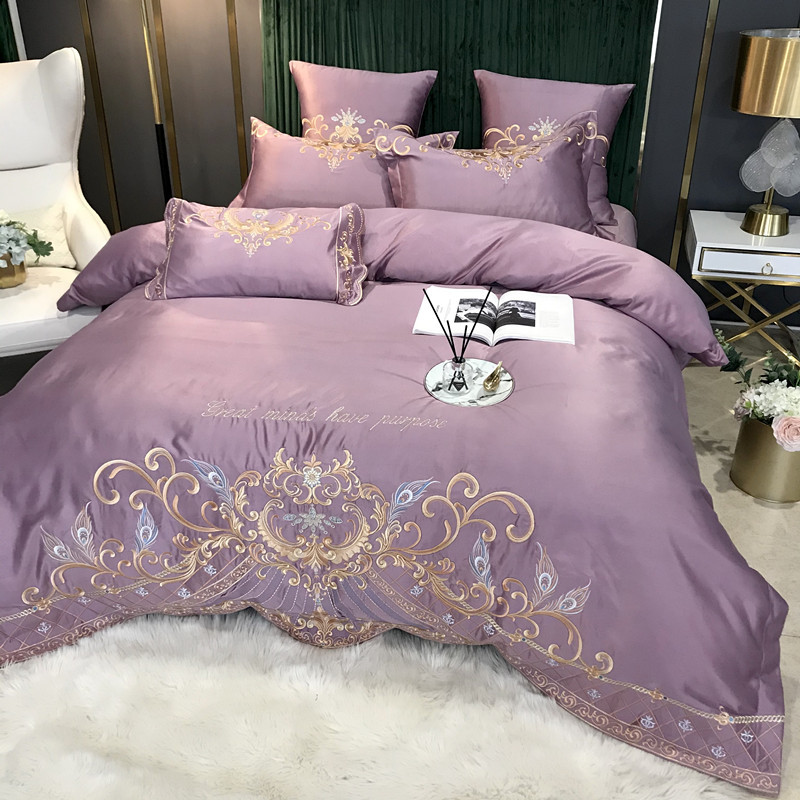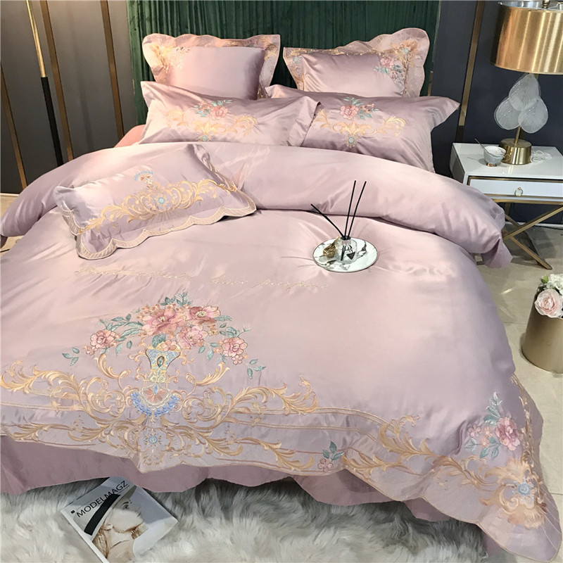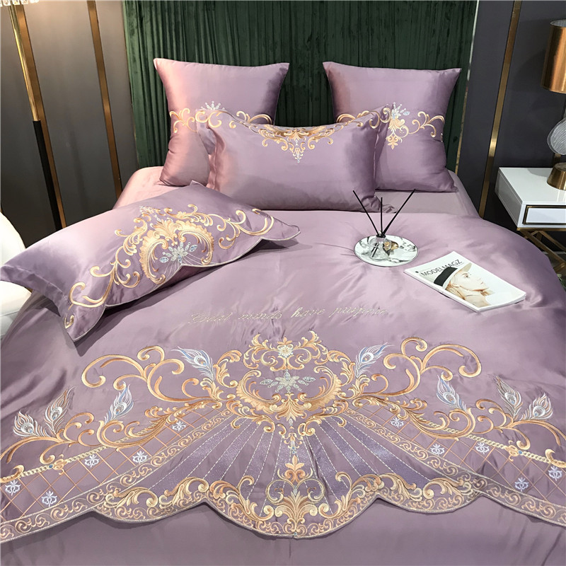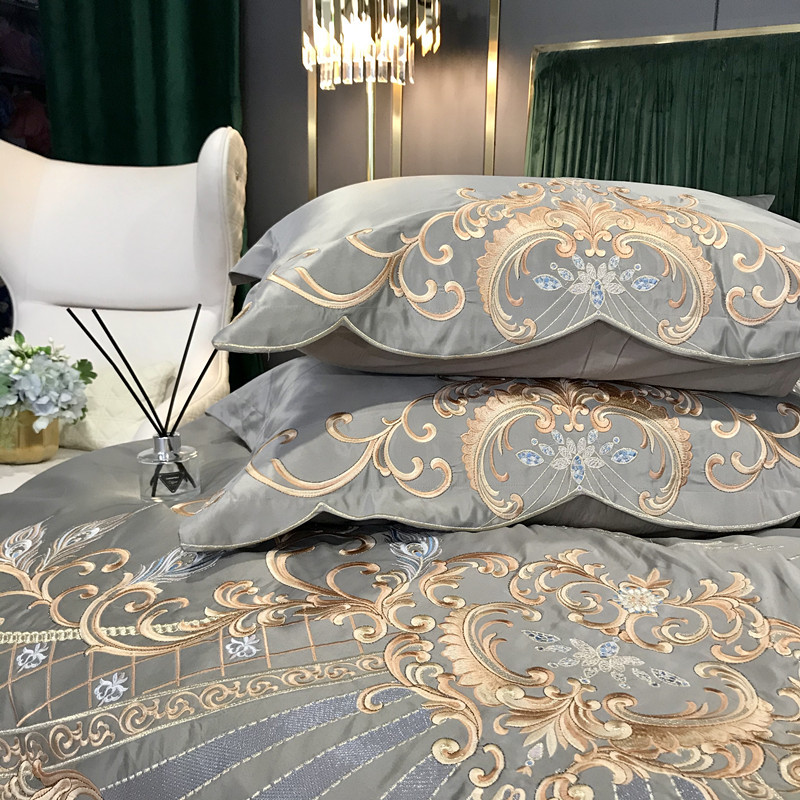 Phong Cách Châu Âu Cao Cấp Sang Trọng Thêu Cưới 4 Bộ Nguyên Chất Ga Giường Cotton Lụa Vỏ Chăn Cưới Chăn Ga Gối