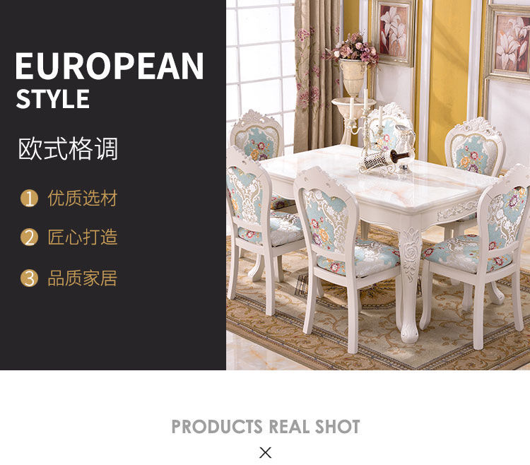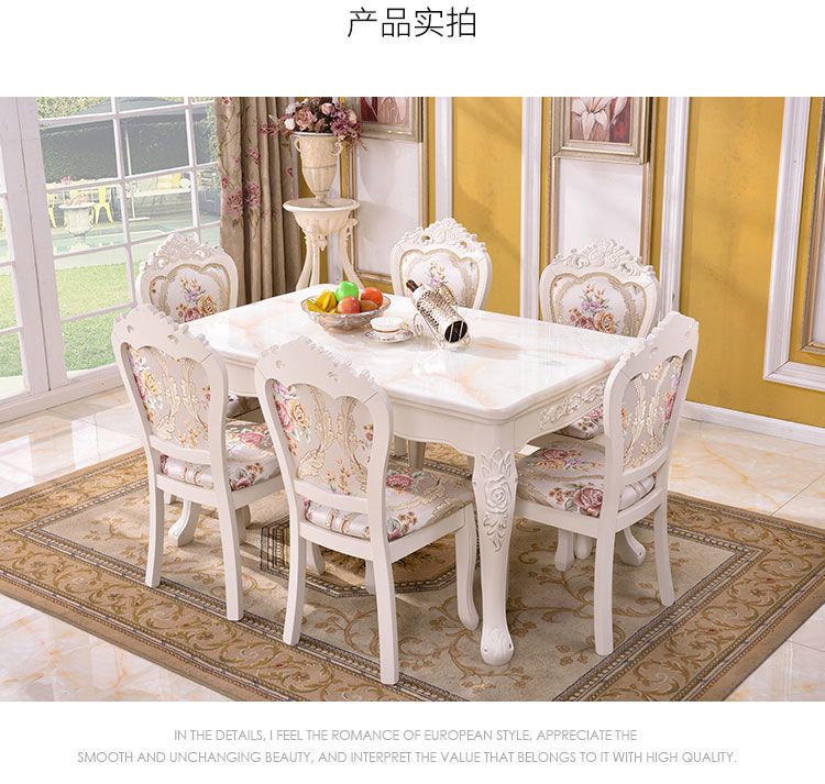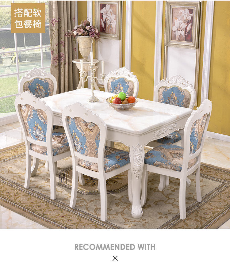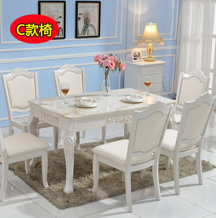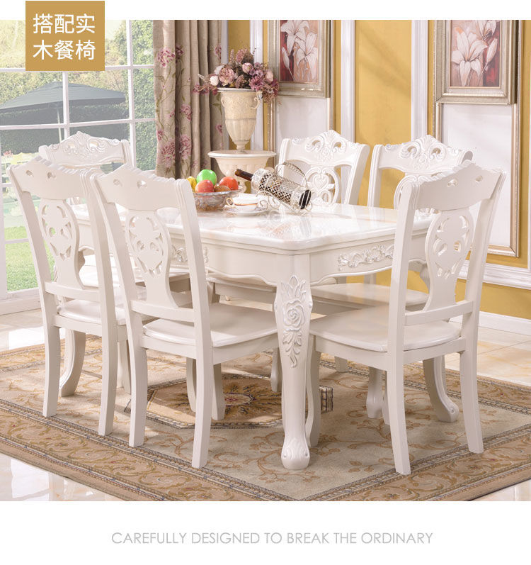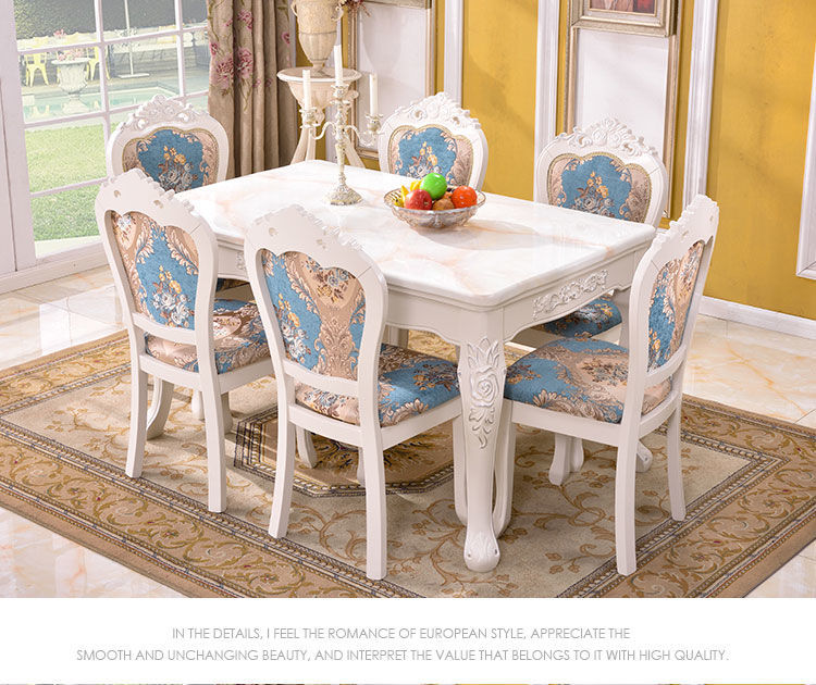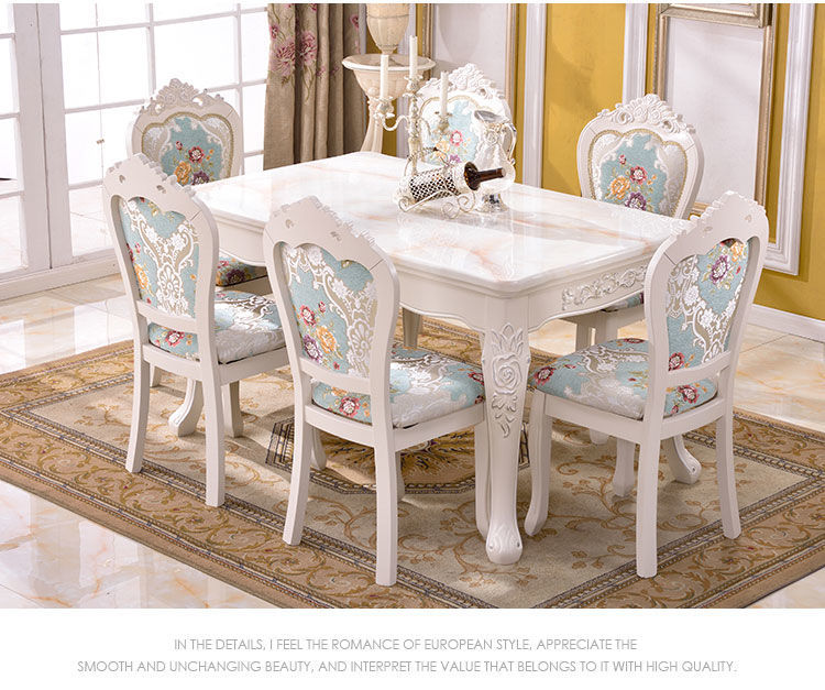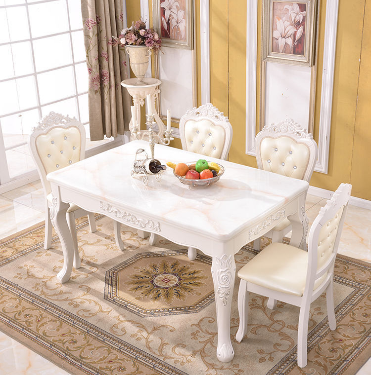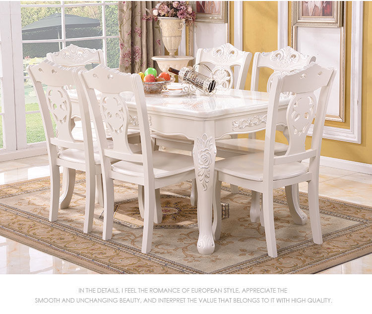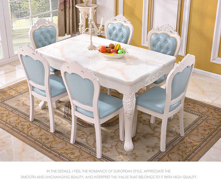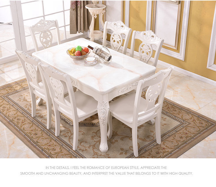 Phong Cách Châu Âu Đá Cẩm Thạch Bàn Ăn Và Ghế Kết Hợp Hình Chữ Nhật 6 Người Trắng Mục Vụ Bàn Ăn Gỗ gia đình Miễn Phí Vận Chuyển – Bàn ăn nhập khẩu cao cấp