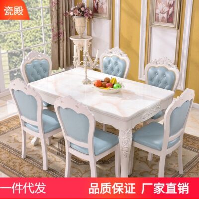 Phong Cách Châu Âu Đá Cẩm Thạch Bàn Ăn Và Ghế Kết Hợp Hình Chữ Nhật 6 Người Trắng Mục Vụ Bàn Ăn Gỗ gia đình Miễn Phí Vận Chuyển là sản phẩm nổi bật trong dòng bàn ăn nhập khẩu, thiết kế hiện đại và sang trọng, phù hợp với nhiều không gian nội thất cao cấp.