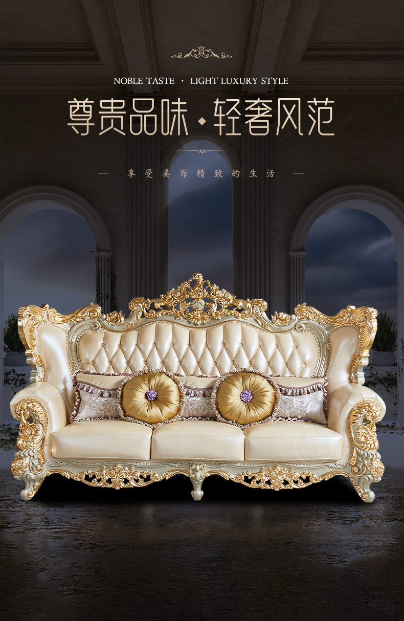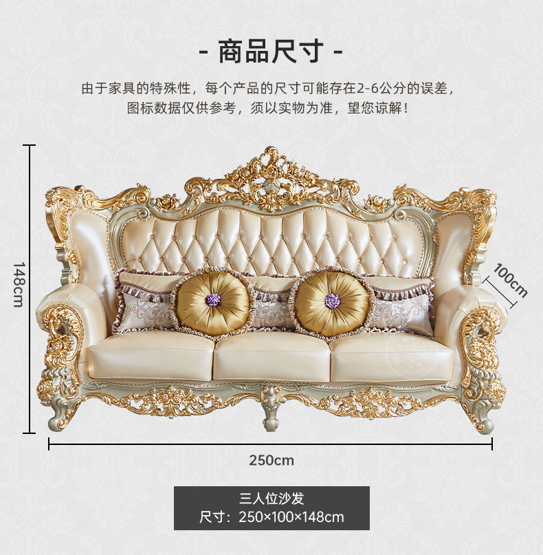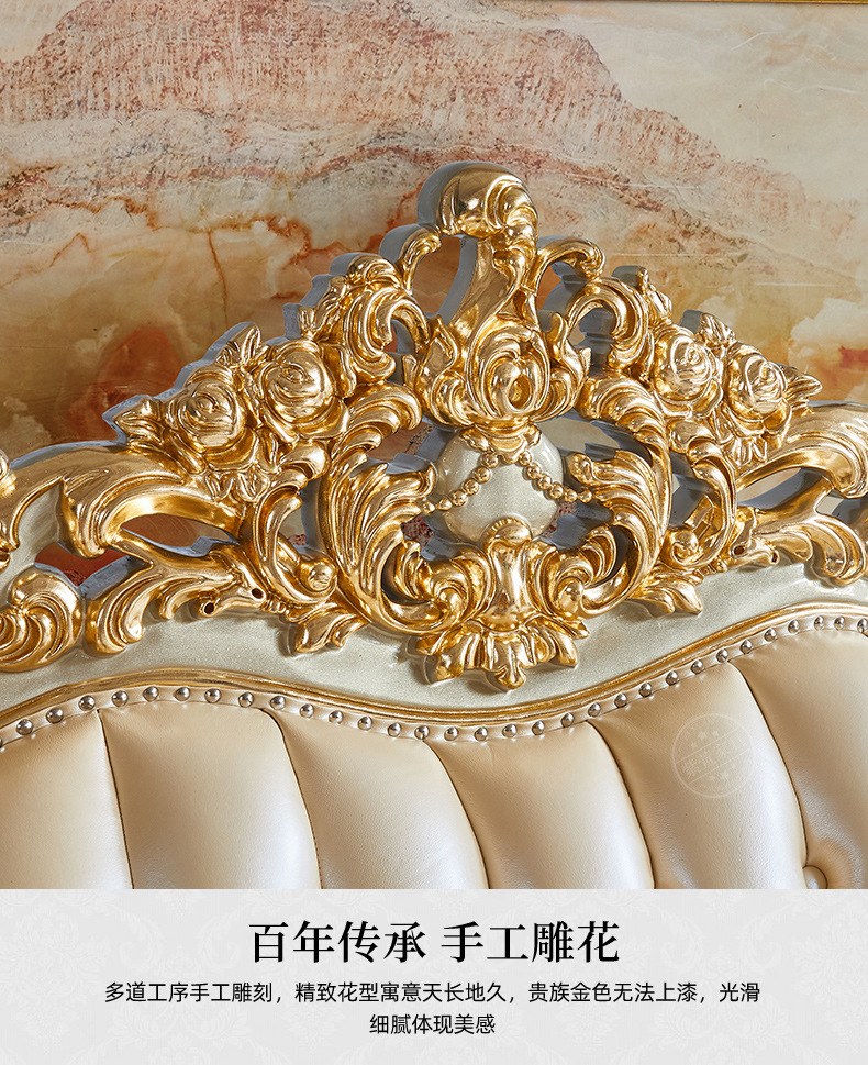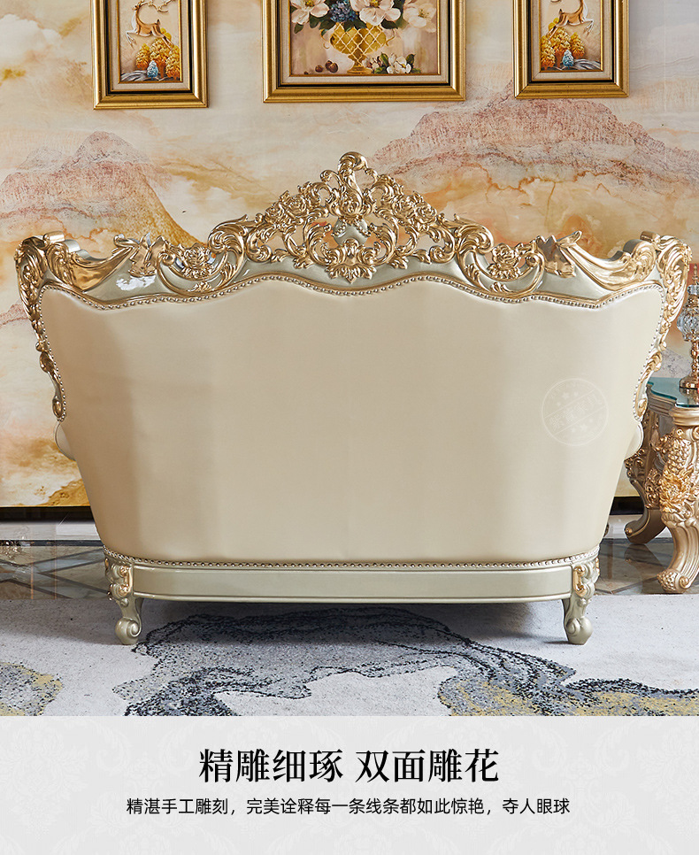 Phong cách Châu Âu đầu lớp sofa da kết hợp gỗ nguyên khối chạm khắc sang trọng biệt thự cỡ lớn sofa phòng khách nhà máy bán buôn