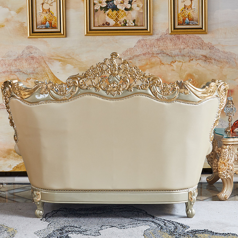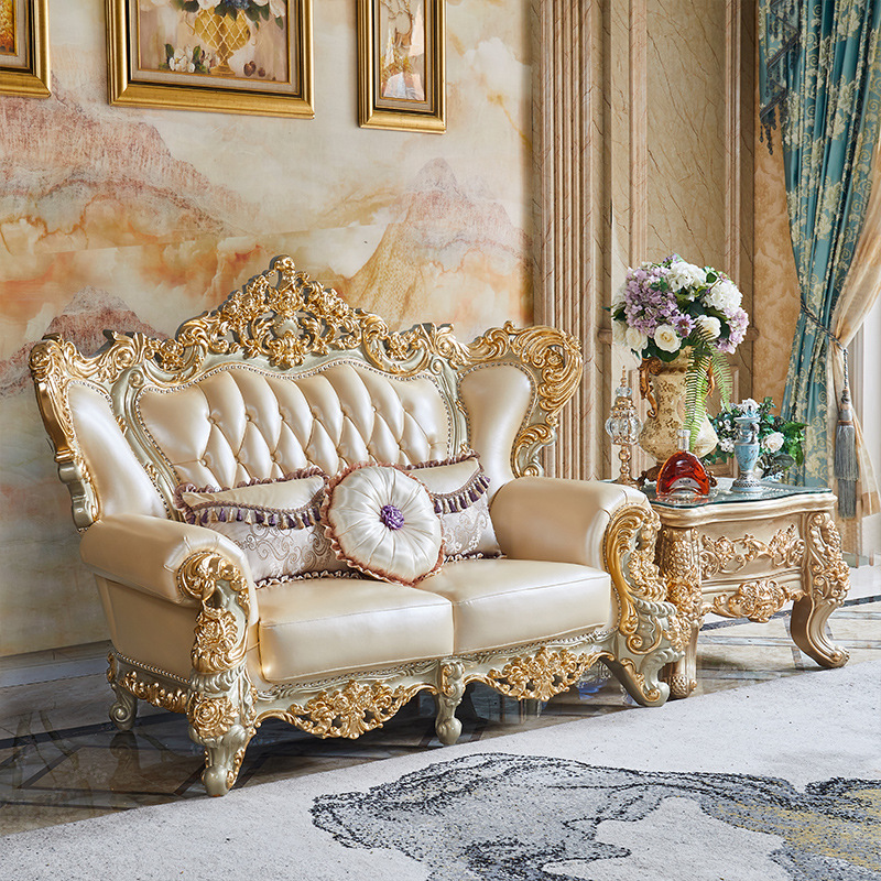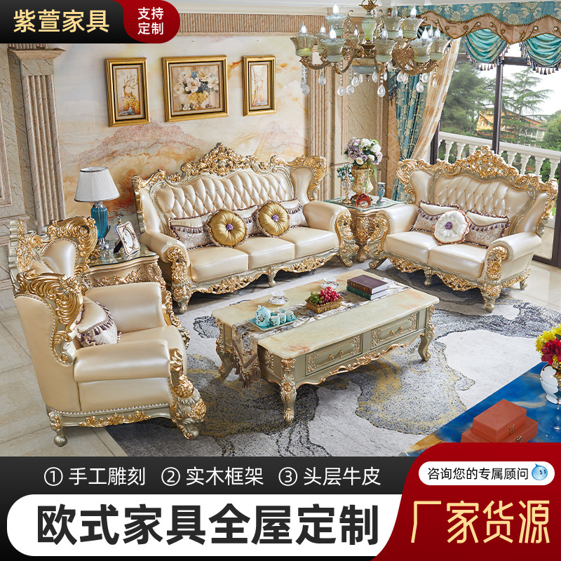 Phong cách Châu Âu đầu lớp sofa da kết hợp gỗ nguyên khối chạm khắc sang trọng biệt thự cỡ lớn sofa phòng khách nhà máy bán buôn