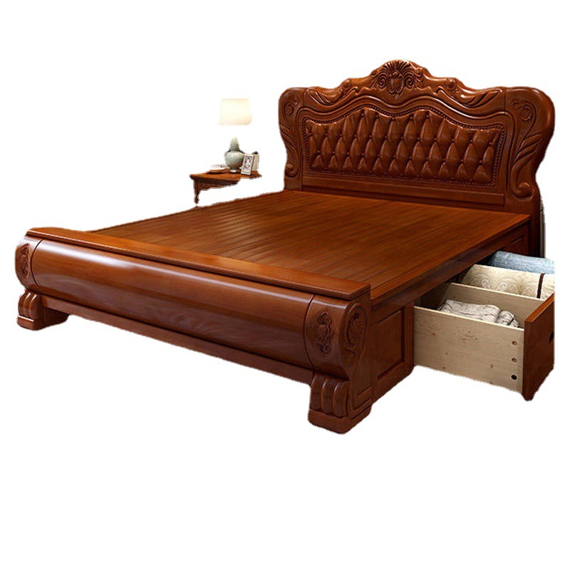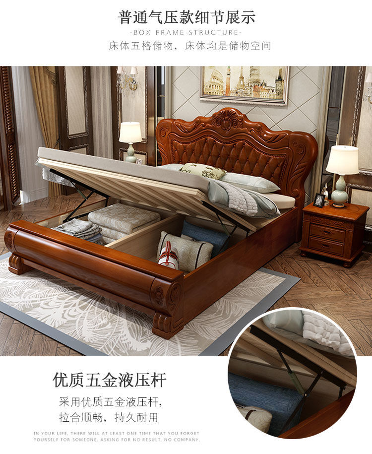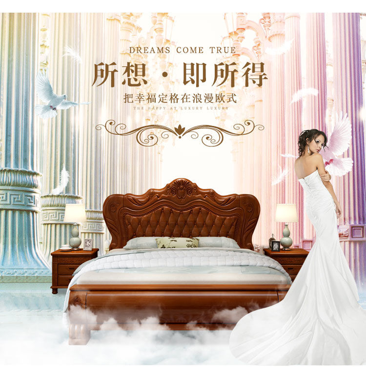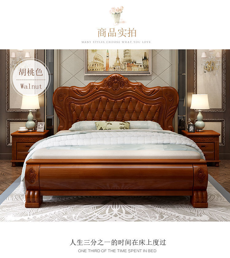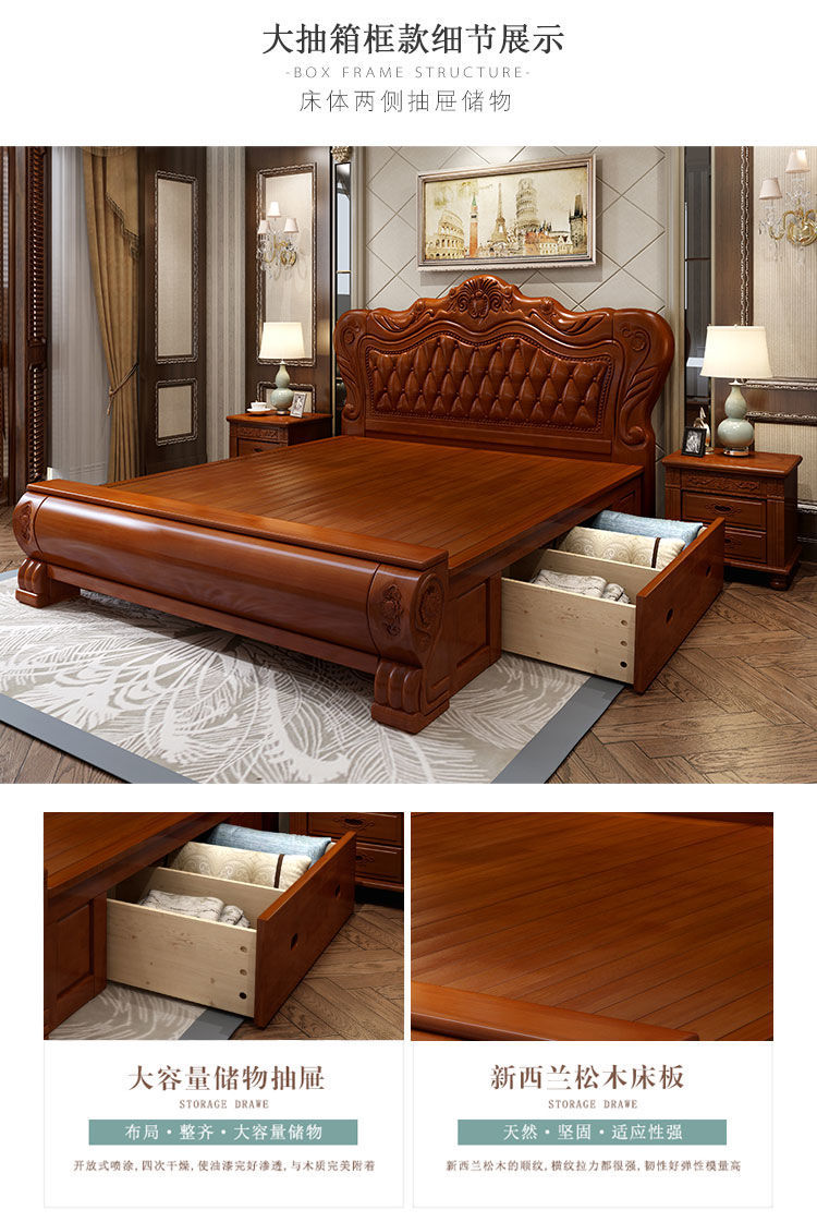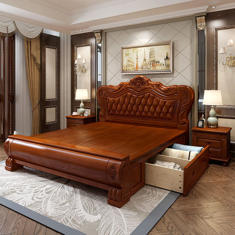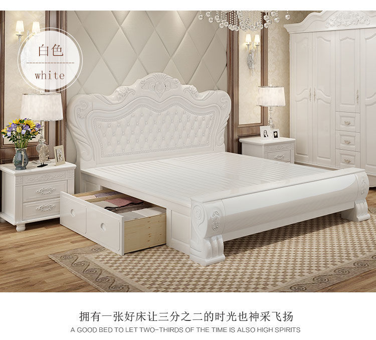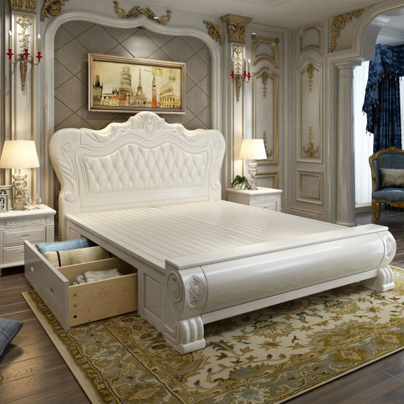 Phong cách châu Âu giường gỗ nguyên khối Giường lớn 2 mét 1,8/1,5 mét giường cưới chạm khắc giường công chúa màu trắng Phòng ngủ giường đôi giường lưu trữ