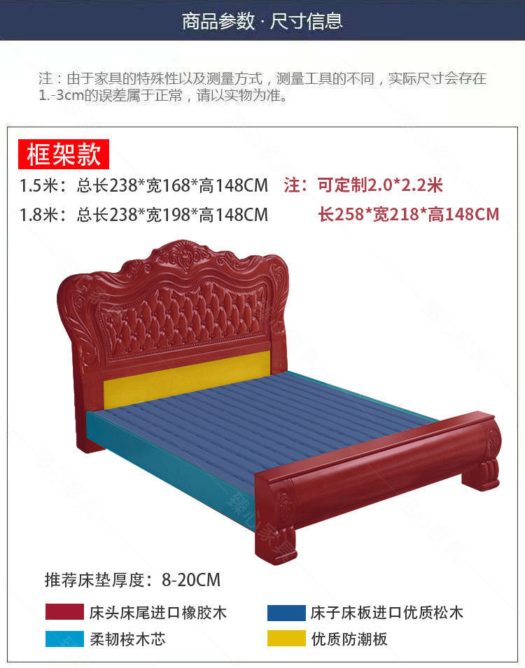 Quy trình kết cấu gỗ: chạm khắc Danh mục sản phẩm: các màu khác: giường khung 1,5m * 2,0m/giường áp suất không khí 1,5m * 2,0m/giường khung hộp 1,5m * 2,0m/giường khung 1,8m * 2,0m/1,8m * 2,0m áp suất không khí Giường/giường hộp 1,8m*2,0m/giường khung 2m*2,2m/giường áp suất không khí 2m*2,2m/giường hộp 2m*2,2m/giường hộp 2m*2,2m Model: 95 Có Không gian lưu trữ: Có Xử lý phương thức: Khác Có bằng sáng chế hay không: Không Có giao hàng tận nơi hay không: Tích hợp giao hàng và lắp đặt Có cung cấp dịch vụ lắp đặt hay không: Không Chất liệu: Gỗ thông Đối tượng áp dụng: Dù trẻ em xuất khẩu xuyên biên giới Nguồn cung cấp đặc biệt: Không Kết cấu: Nội thất khác cấu trúc: Cấu trúc khí nén Mã sản phẩm: PD3879559554 Thương hiệu: Zhenxin có lưng mềm hay không: Không Loại bằng sáng chế: Mô hình tiện ích Thông số kỹ thuật của bằng sáng chế: 66 Có mô hình 3D hay không: Không Số bằng sáng chế: 956 Cho dù đó là người nộp thuế chung: Không Chức năng: 20836504895 Kích thước: Giường cao cấp bằng gỗ nguyên khối / [giường] + [1 Bàn đầu giường] / [giường] + [2 bàn đầu giường] / [giường] + [thảm nâu] / [1 tủ] + [thảm nâu] / [2 tủ ] + [thảm nâu] / [2 tủ] + [thảm nâu ] Không gian: Phòng trẻ em có lan can: Không Phong cách: Châu Âu Yếu tố thiết kế: Chạm khắc