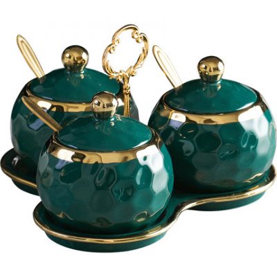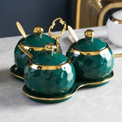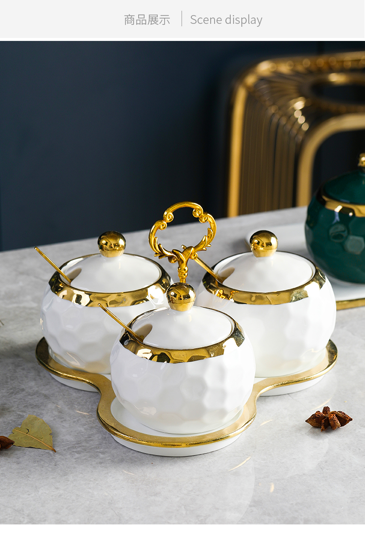 Phong cách Châu Âu hộp đựng gia vị sang trọng nhẹ kết hợp bộ lưu trữ lọ gia vị gốm sứ gia dụng bộ bình lắc muối vật dụng nhà bếp.