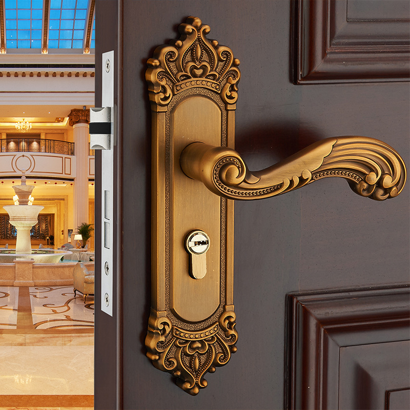 Phong Cách Châu Âu Màu Vàng Phòng Ngủ Mang Khóa Tay Cầm Trong Nhà Khóa Tay Nắm Cửa Bằng Gỗ Khóa cửa Cơ Bán Buôn Nhà Khóa cửa Phòng. Khóa cửa nhập khẩu theo yêu cầu.