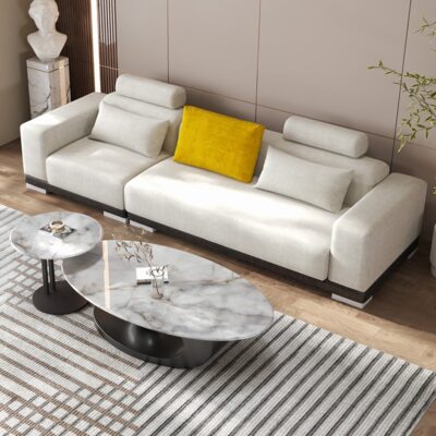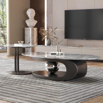 Phong cách châu Âu tối giản Bàn trà đẹp bằng đá cẩm thạch sang trọng đá sang trọng cảm giác cao cấp bàn trà hình bầu dục tủ TV kết hợp màu sắc đá pha lê đơn giản hiện đại