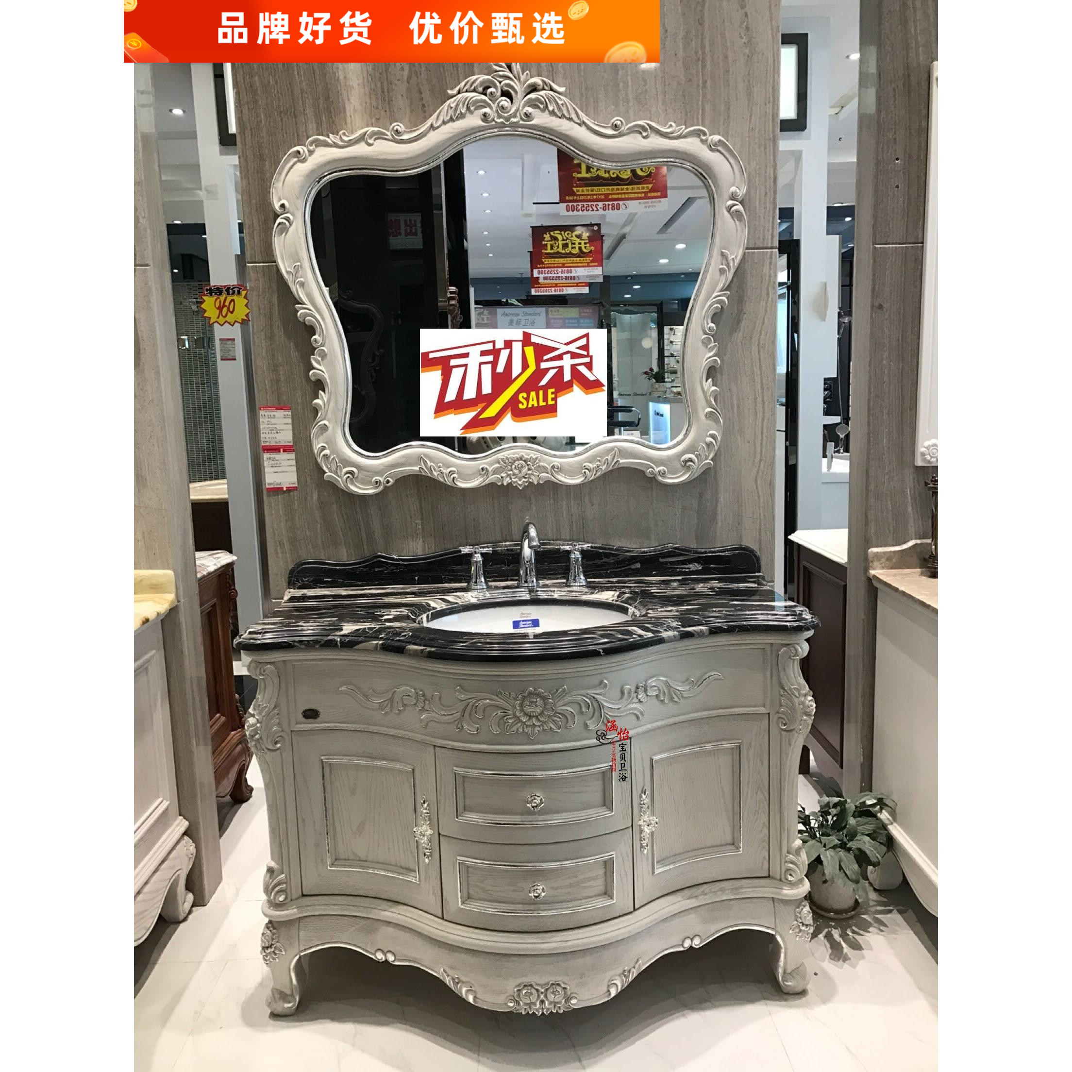 Phong cách Châu Âu tủ phòng tắm gỗ sồi sàn chạm khắc gỗ sồi Jane Tủ phòng tắm Châu Âu phòng tắm bàn trang điểm kết hợp tủ chậu rửa