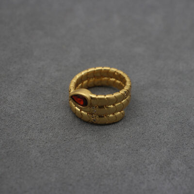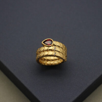 Phong Cách Châu Âu Và Châu Mỹ Thời Trung Cổ Vintage Tinh Thần Con Rắn Nhẫn Giọt Nước Đính Đá Zircon Nâu Vòng Bằng Đồng Mạ Vàng Tuổi Vàng Chảy Ngược ánh Sáng Sang Trọng