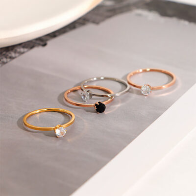 Phong cách châu Âu và Mỹ nóng bỏng đơn giản khảm zircon thép titan đơn chiếc nhẫn kim cương bạn gái cùng phong cách nhẫn sáu móng nhẫn cưới đuôi nhẫn nữ