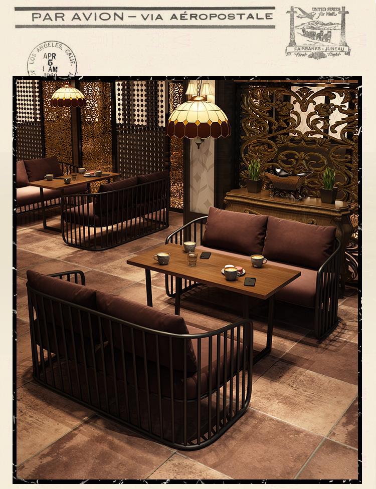 Phong cách công nghiệp cổ điển quán cà phê thẻ ghế sofa thanh rõ ràng thanh thịt nướng cửa hàng nhà hàng phương tây sắt rèn bàn ăn và ghế kết hợp