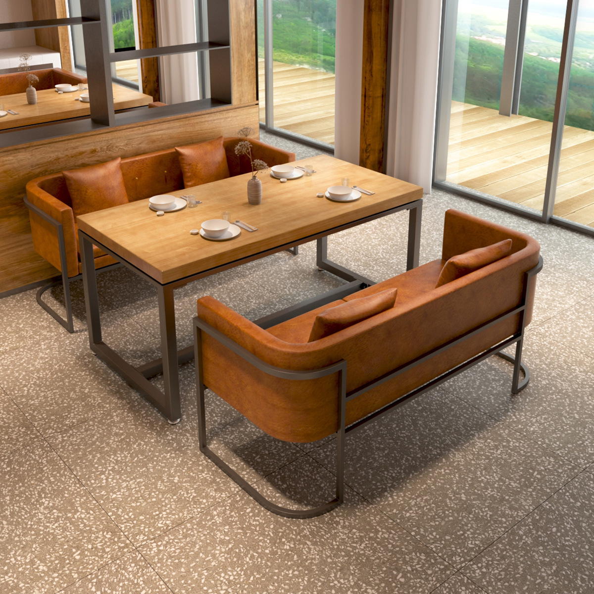 Phong cách công nghiệp kiểu Mỹ bar cafe thẻ ghế sofa nhà hàng tây khách sạn bàn ăn kết hợp bàn ghế đàm phán