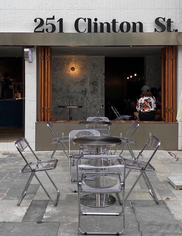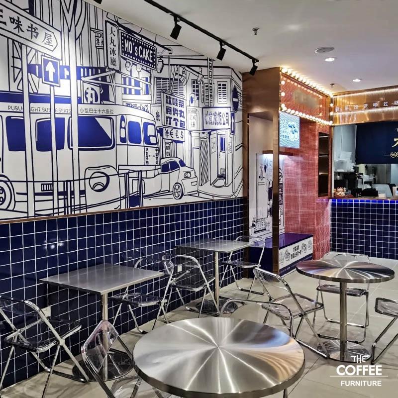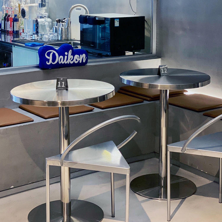 Phong cách công nghiệp lưới đỏ quán trà sữa quán cà phê bàn tròn inox đơn giản ngoài trời kết hợp bàn ăn kim loại sắt rèn