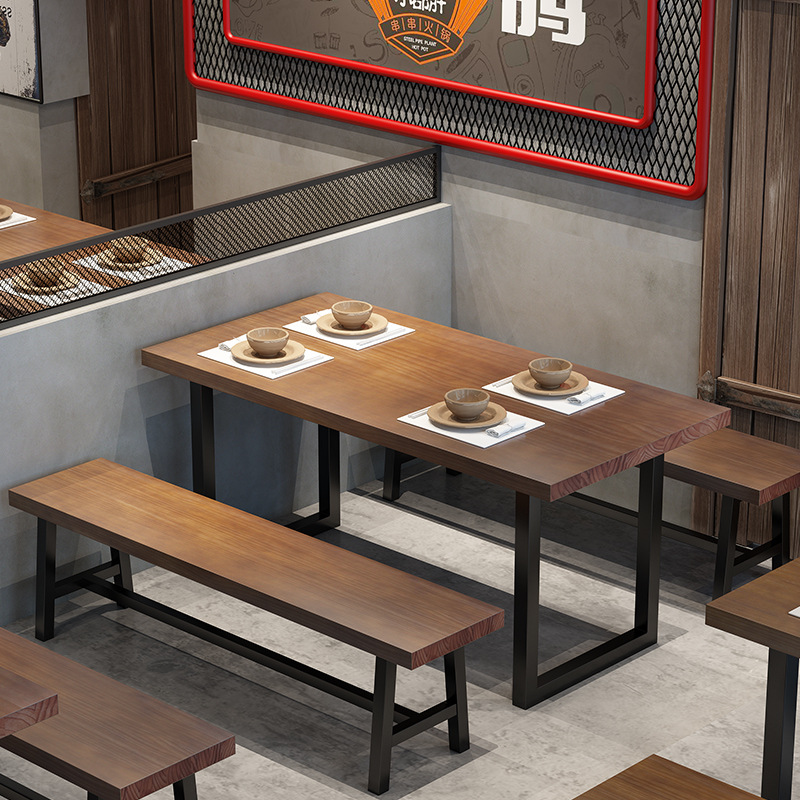 Phong cách công nghiệp Mỹ bàn ăn gỗ nguyên khối nhà hàng quầy bar nhỏ bốn người bàn ăn sắt rèn quán cà phê bàn ăn giải trí