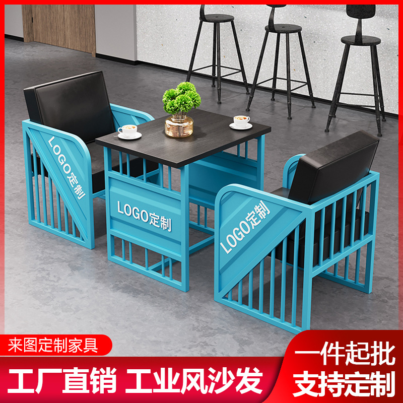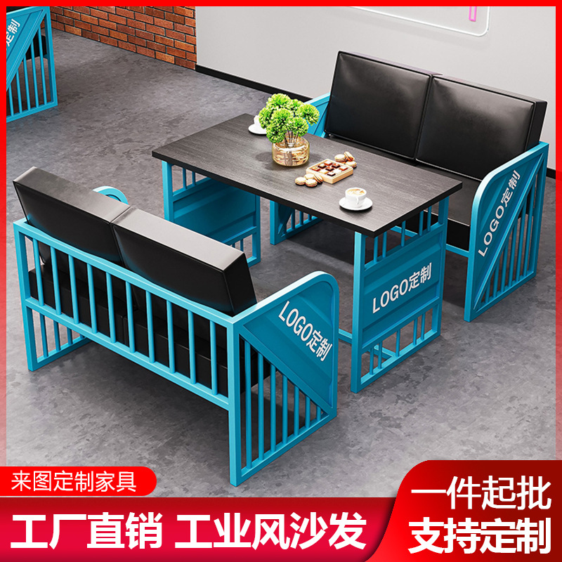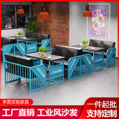 Phong cách công nghiệp sắt rèn thẻ ghế sofa lưới màu đỏ quán trà sữa quán cà phê nhà hàng thanh rõ ràng kết hợp bàn ghế sáng tạo