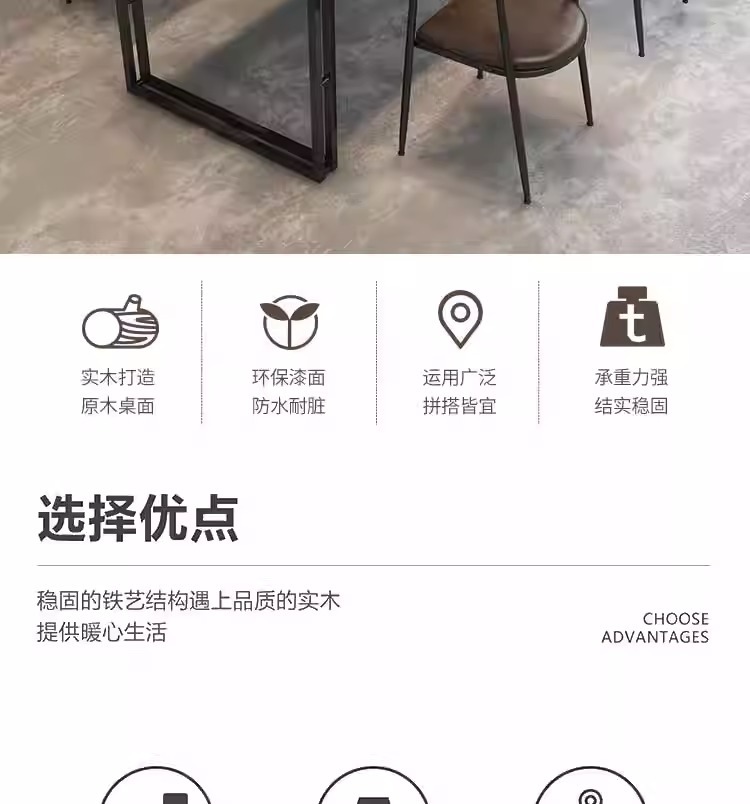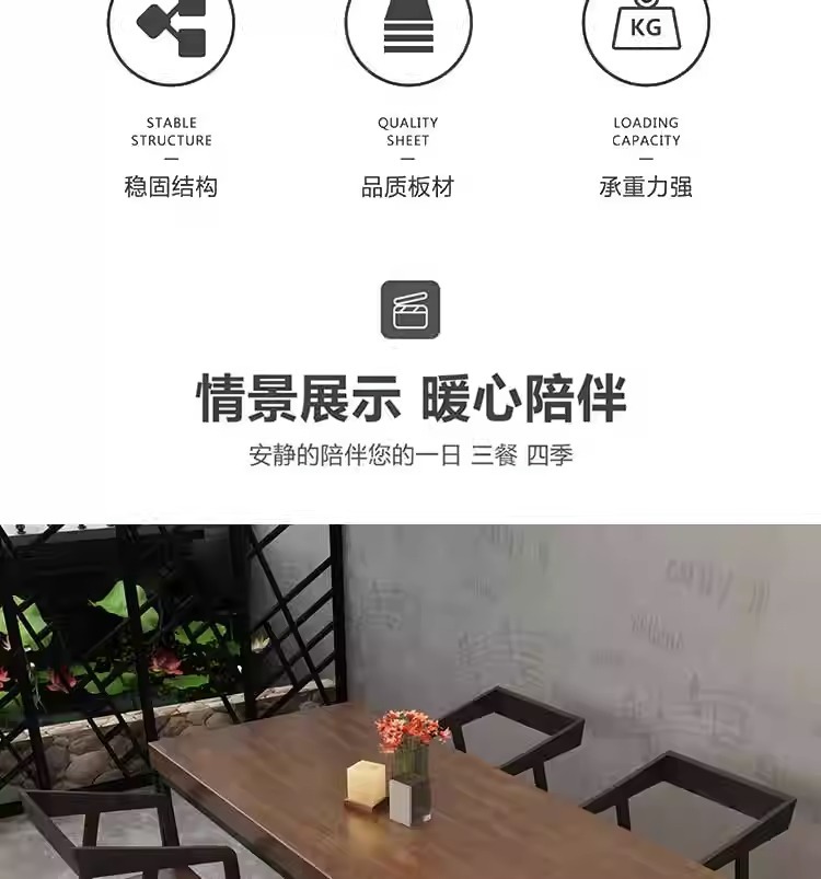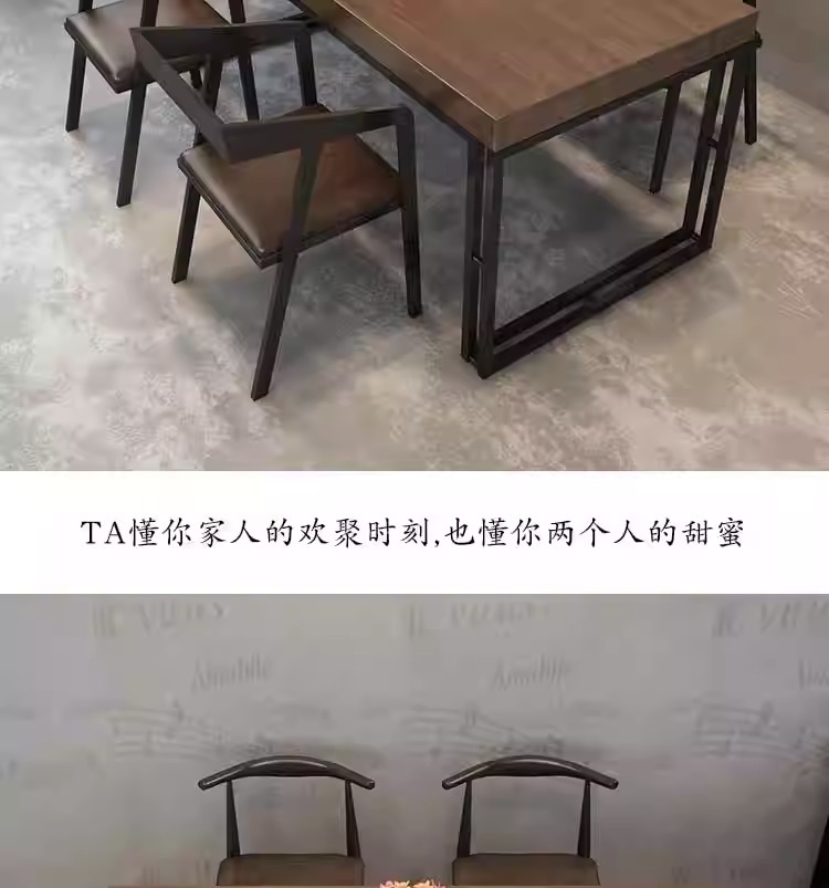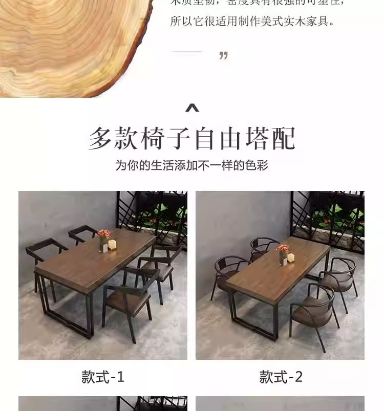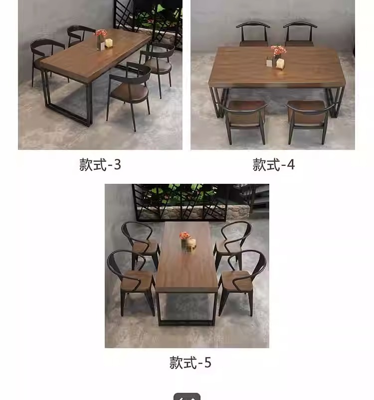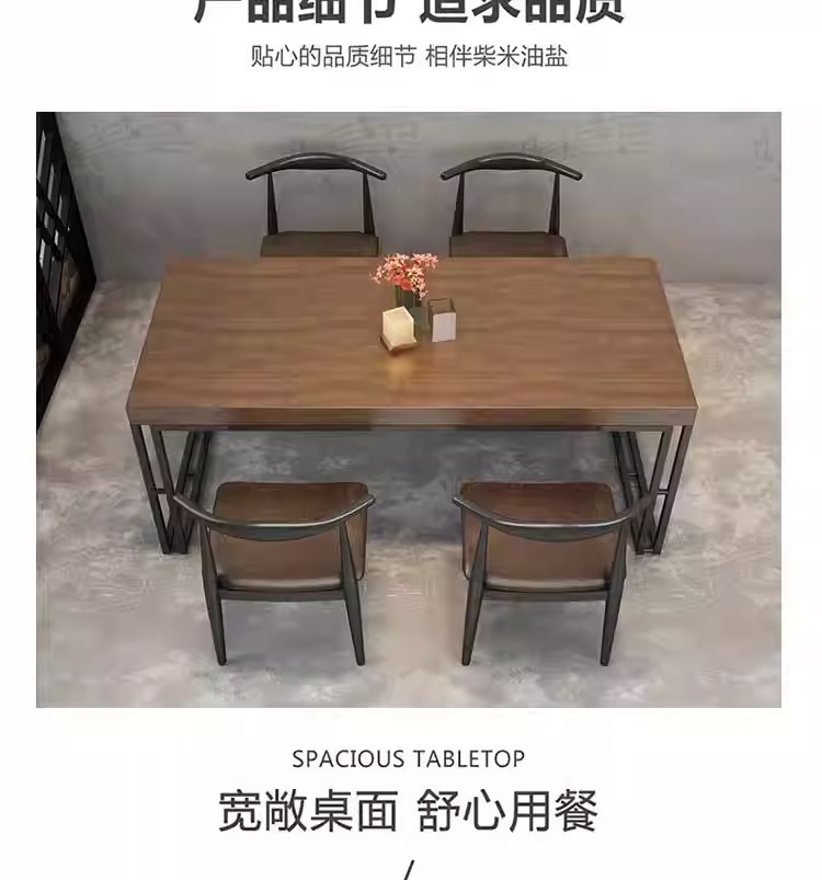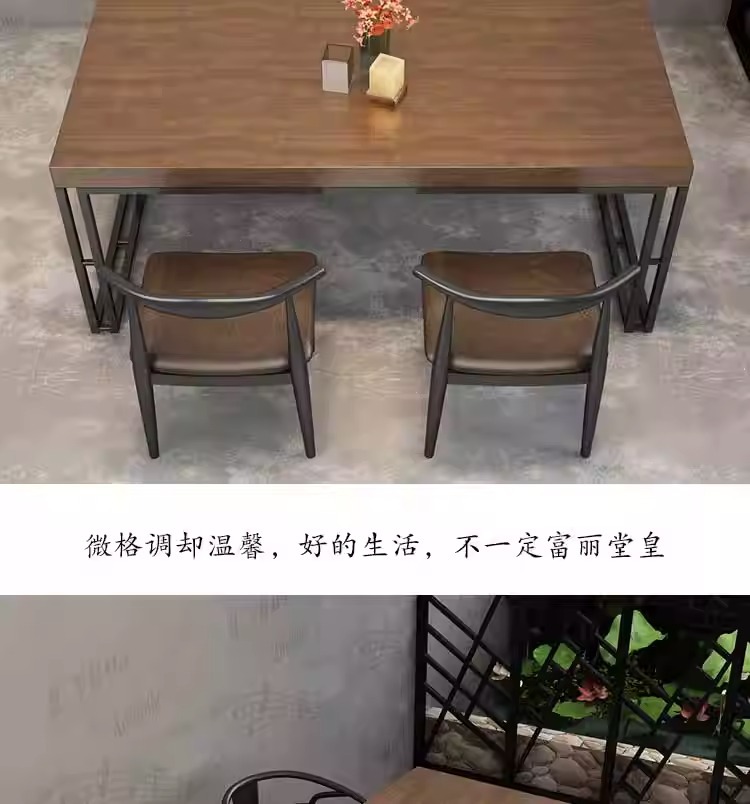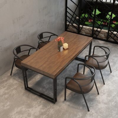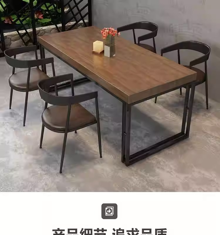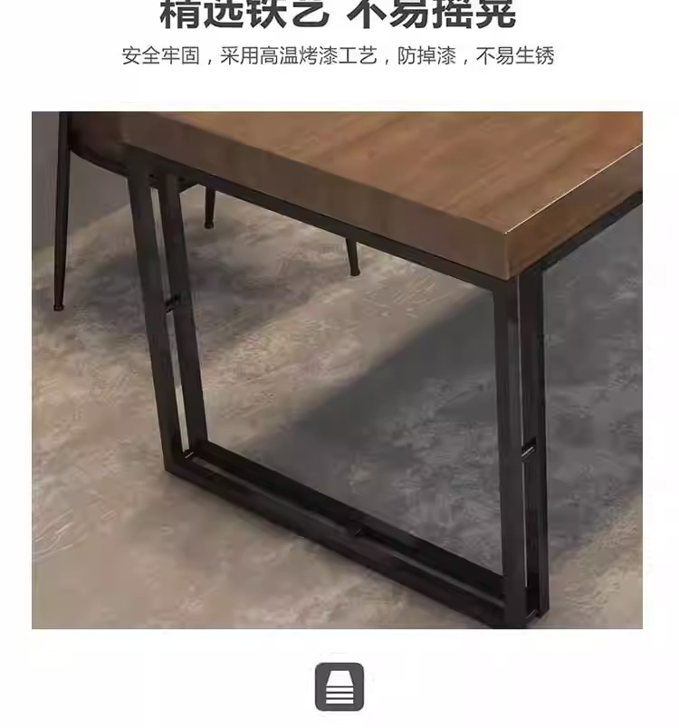 Phong cách công nghiệp thanh retro nướng nhà hàng lẩu gỗ nguyên khối cafe bàn ăn sắt bàn ghế hình chữ nhật kết hợp