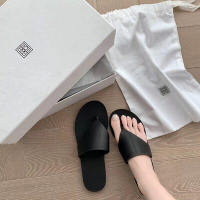 Phong cách của Su Yinyin là sự kết thúc của thời trang ~ đôi dép lê đế bằng bằng da * ow Xăng đan đế bằng hình tam giác thông cho phụ nữ vào mùa hè