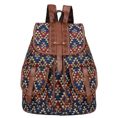Phong Cách Dân Tộc Mới Họa Tiết Retro Ba Lô Vải Bố Nữ Thời Trang Cá Tính Du Lịch Dây Rút Ba Lô Nhỏ Bán Buôn