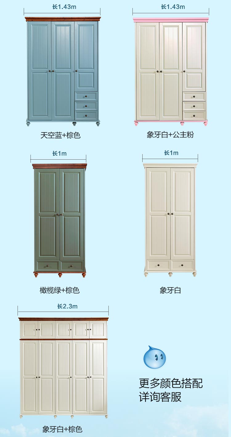 Tủ quần áo phong cách Địa Trung Hải gỗ rắn Tủ quần áo trẻ em phòng ngủ cửa trượt Tủ quần áo Nội thất gia đình Tủ quần áo màu trắng