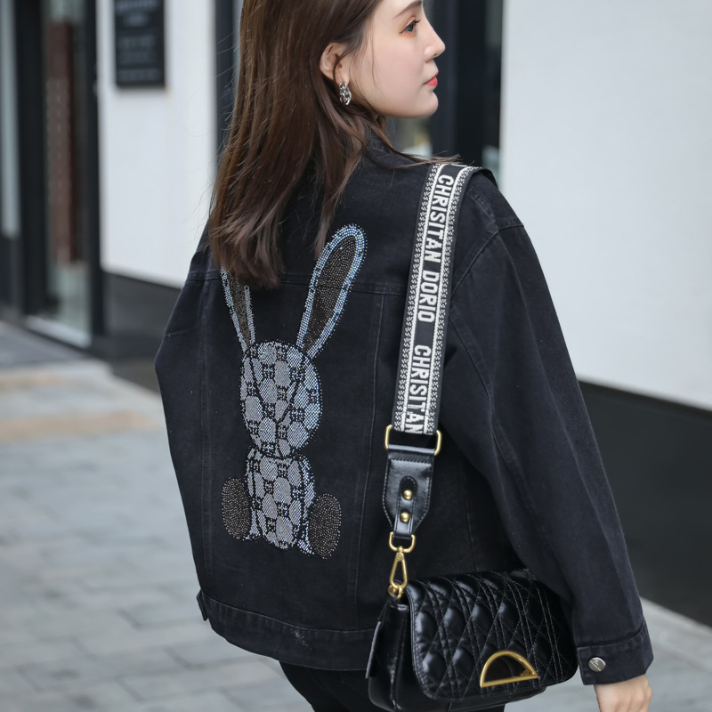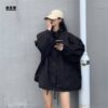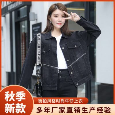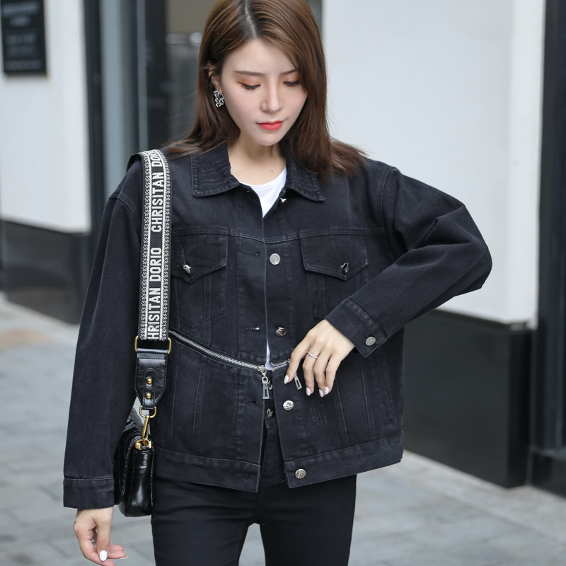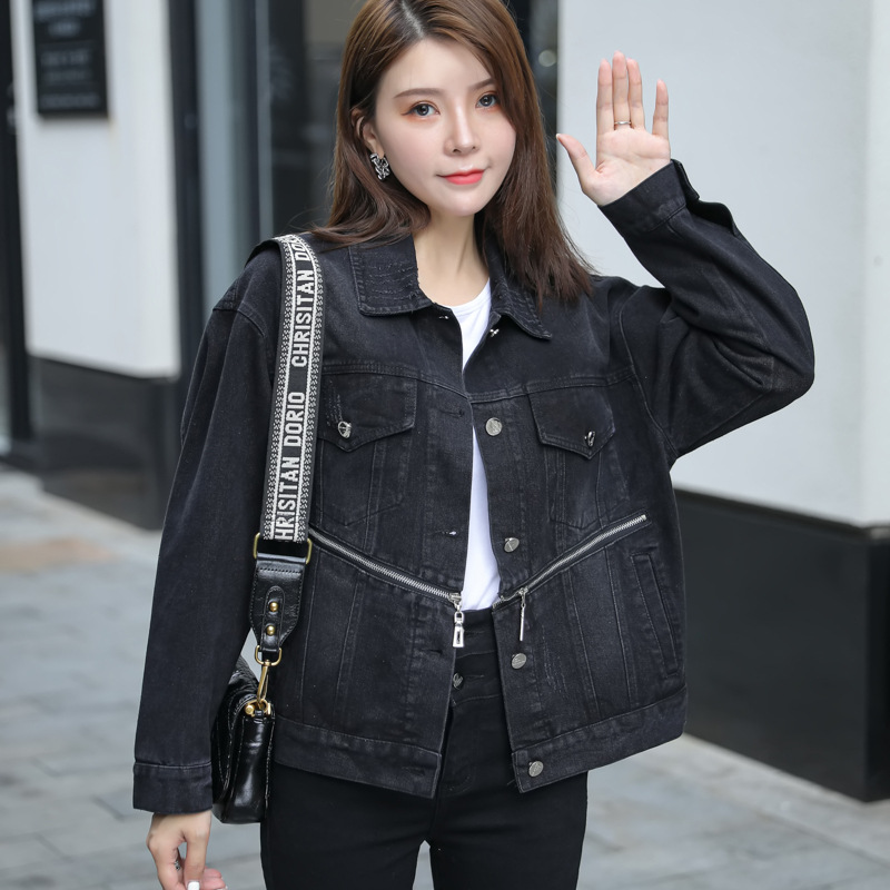 Phong cách đường phố Hàn Quốc phóng khoáng thường ngày dành cho học sinh phù hợp với mùa xuân và mùa thu áo khoác denim nữ áo khoác ngoài dài tay màu đen áo khoác