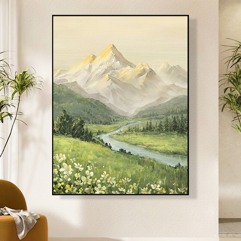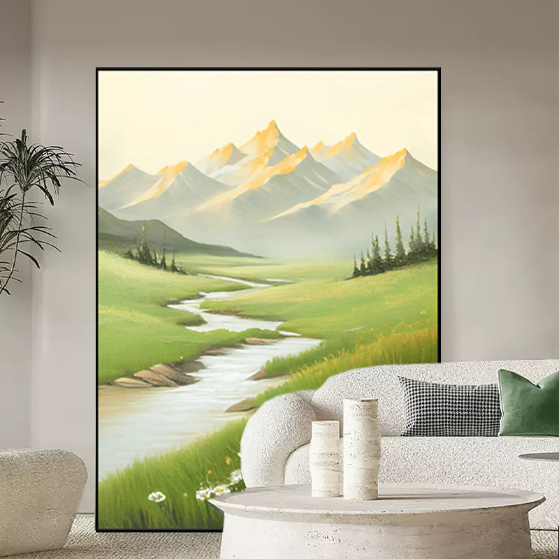 Phong cách kem tối giản hiện đại phòng khách treo tranh họa tiết vẽ tay sơn dầu tranh phong cảnh lối vào hiên nhỏ tươi mát tranh trang trí nhà cửa