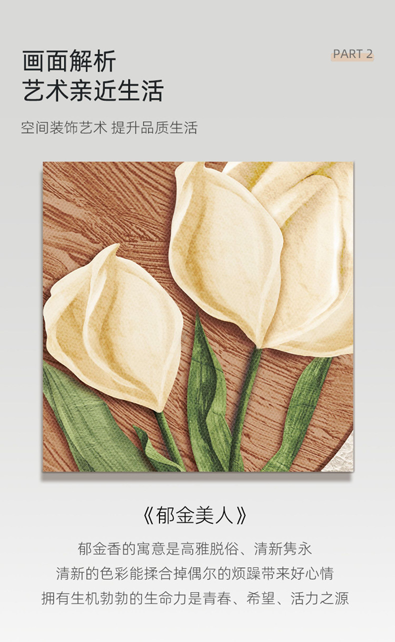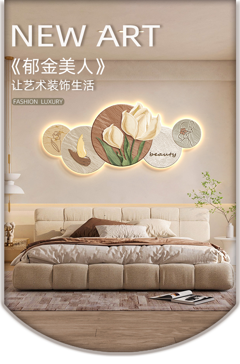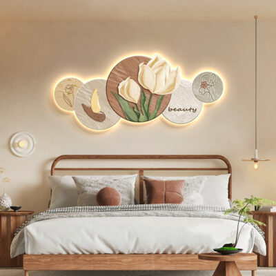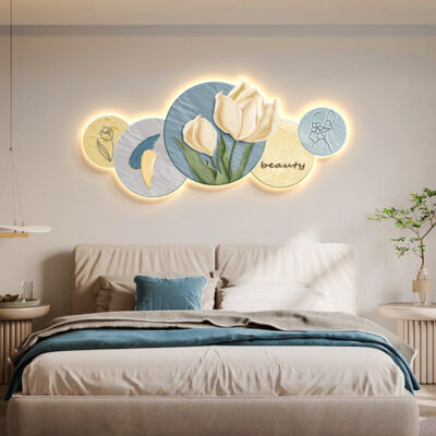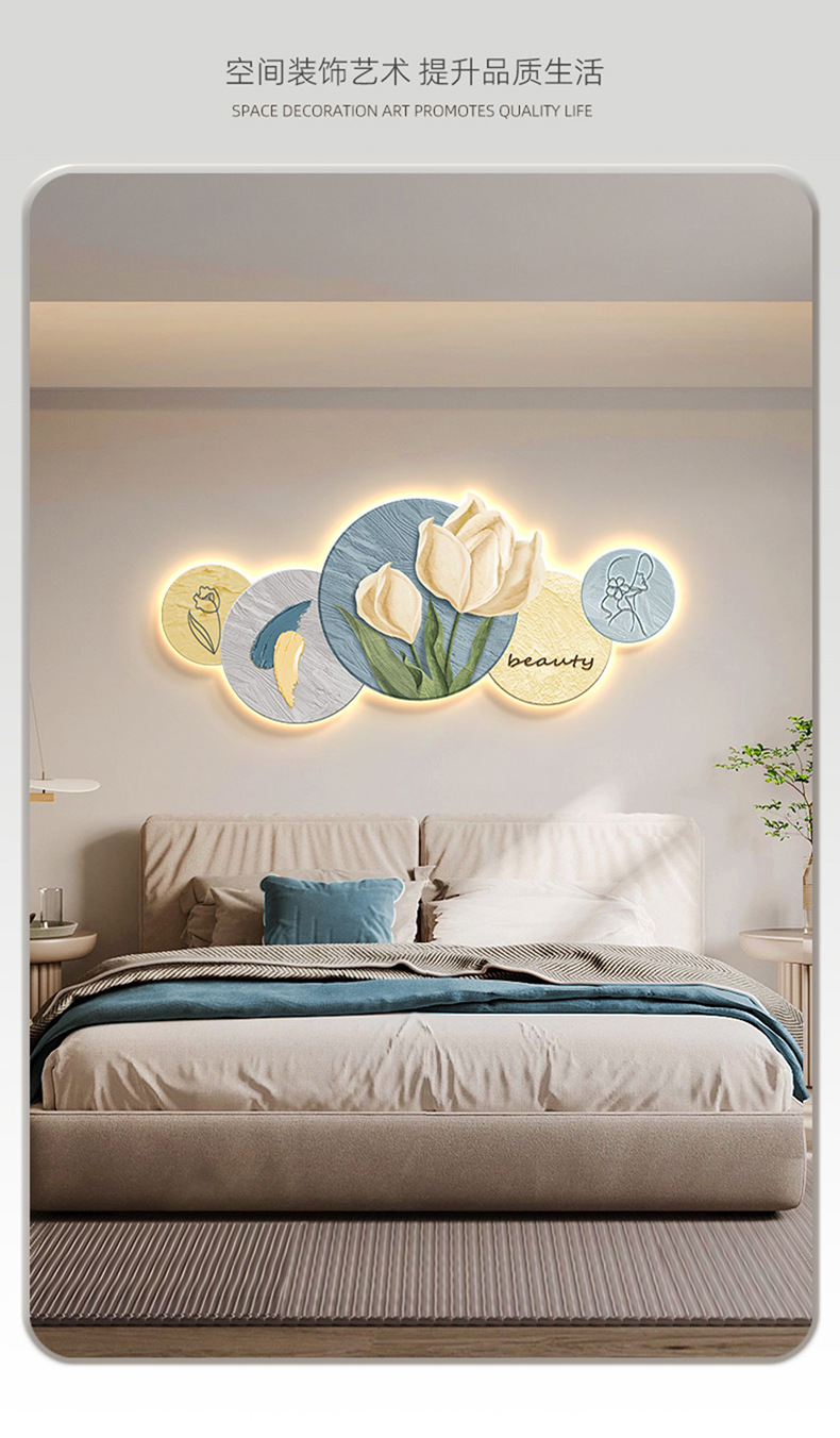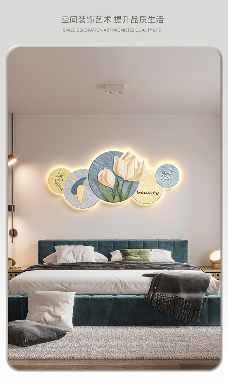 Phong cách kem trang trí phòng khách tranh Bắc Âu ấm áp hoa tulip đèn LED tranh hiện đại phòng ngủ tối giản tranh đầu giường