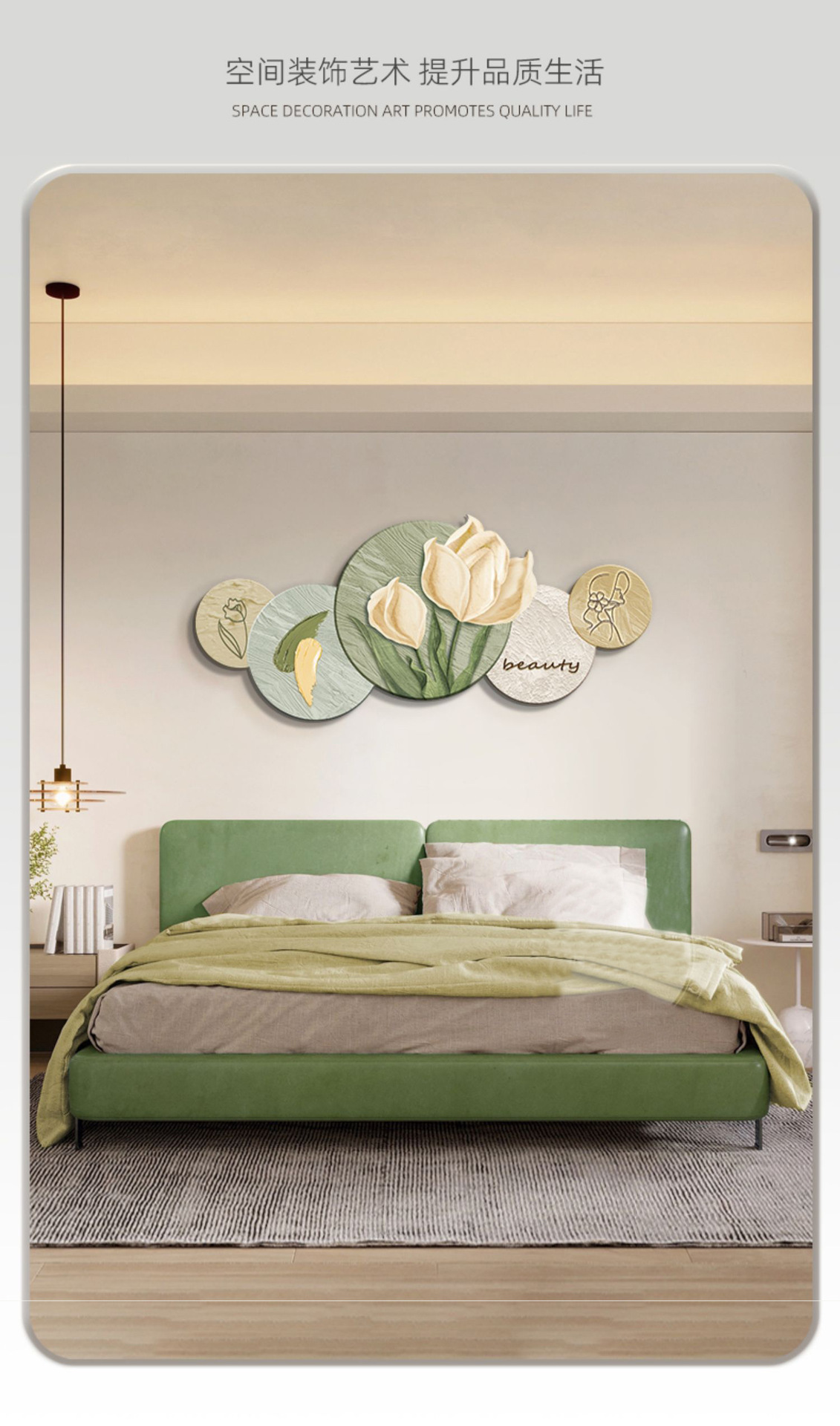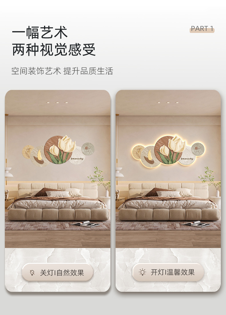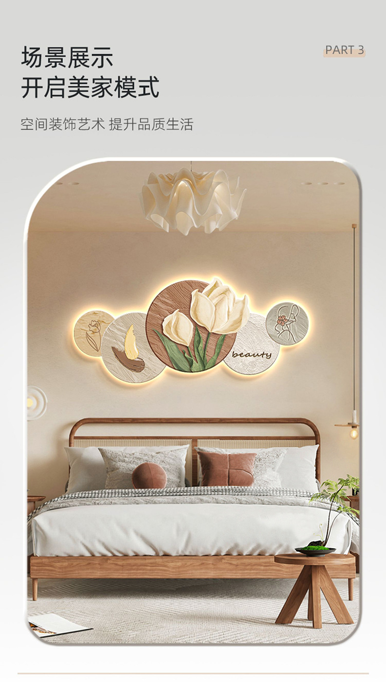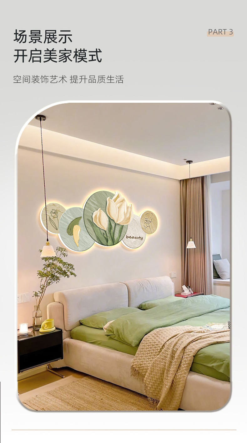 Phong cách kem trang trí phòng khách tranh Bắc Âu ấm áp hoa tulip đèn LED tranh hiện đại phòng ngủ tối giản tranh đầu giường