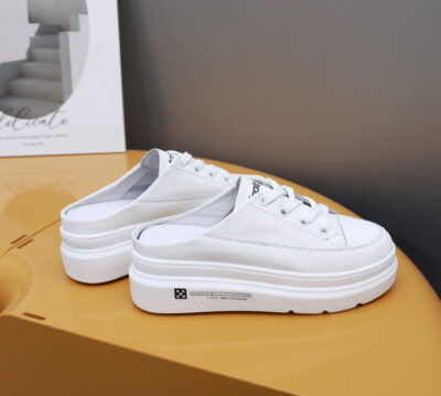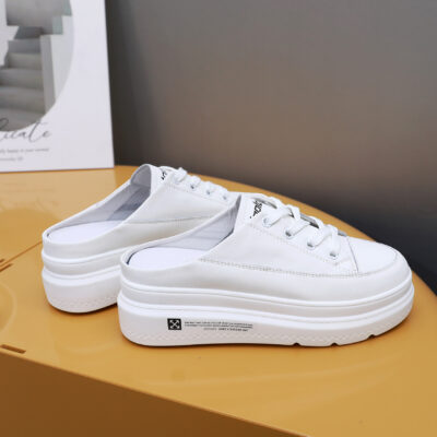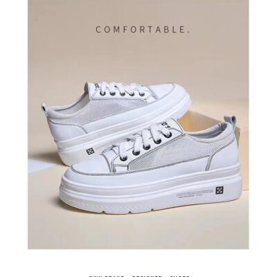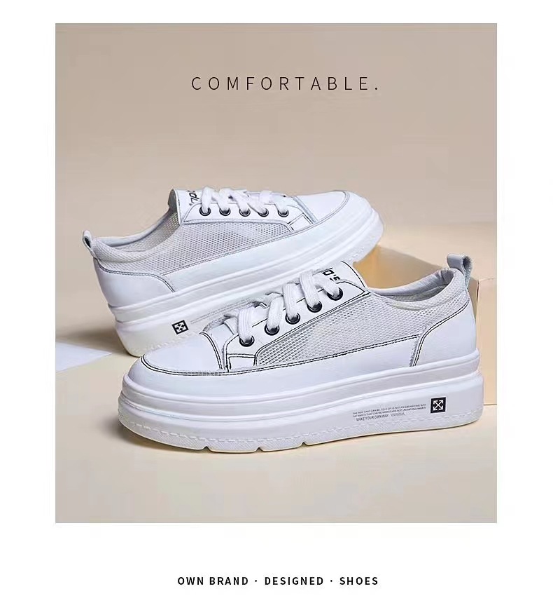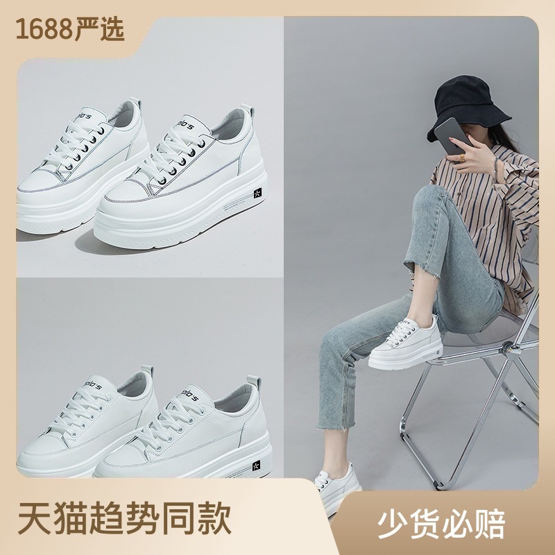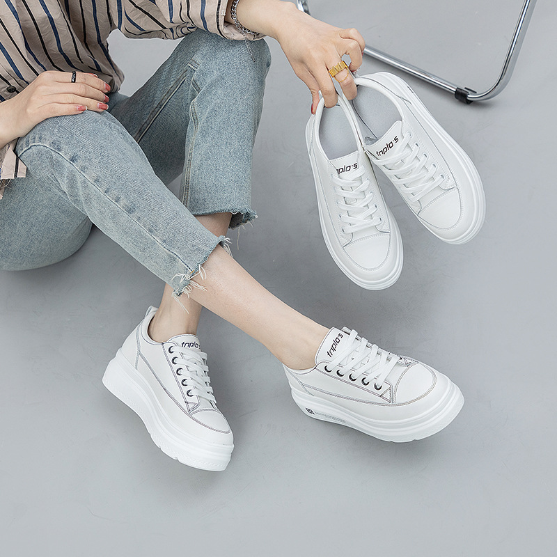 Phong cách mới bên trong nâng cao da thoáng khí muffin đế dày giày nhỏ màu trắng mũi tròn buộc dây giày đơn gót phẳng tùy chọn sơ mi rơ moóc