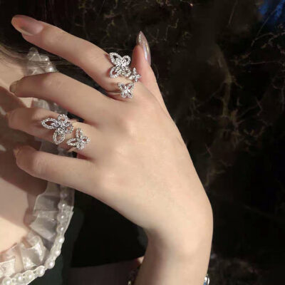 Phong cách mới nhẹ nhàng sang trọng đầy kim cương zircon khảm siêu nhỏ nhẫn hở bướm nữ tinh tế khí chất thần tiên linh hoạt