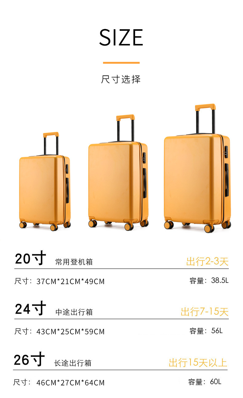 Kích thước hành lý: Lớn Hoa văn: Đồng màu Kết cấu lớp lót: Polyester Có lớp giãn nở hay không: Không Nguồn cung cấp Danh mục: Màu sắc giao ngay: Đen/Đỏ/Hồng/Vàng/Xanh lá cây/Cam/Cam Dù còn hàng: Có Mẫu: R8 Phương pháp xử lý: Bề mặt sơn Phong cách con lăn: Bánh xe phổ thông Dù có khóa: Có Loại túi bên ngoài: Túi vá bên trong Dù hỗ trợ Phân phối: Phân phối hỗ trợ Loại phụ kiện: Xe đẩy Chất liệu: Chất liệu ABS Có hoặc không có Che mưa: Không Xử lý Tùy chỉnh: Có Dù là để đeo chéo -xuất khẩu biên giới Nguồn cung cấp: Không Loại khóa: Khóa kết hợp thông thường Số dây đeo vai: Không có dây đeo Mã sản phẩm: Màu R86 Hộp lớn Thương hiệu: Runxin Cảnh áp dụng: Du lịch giải trí Bộ phận mang theo: Tay cầm mềm LOGO in: Có Độ cứng hành lý: Cứng Giới tính áp dụng : Trung tính / cả nam và nữ Cân nặng: Tham khảo dịch vụ khách hàng Loại hàng tồn kho: Toàn bộ đơn hàng phù hợp để làm quà tặng Xe đẩy: có Kích thước: 20″/24″/26″/28″/28″ Cách mở: túi dây kéo Cấu trúc bên trong: túi khóa kéo/túi điện thoại di động/túi chứng chỉ/túi khóa kéo xen kẽ/túi khóa kéo xen kẽ Phong cách: du lịch giải trí Dung tích: 36-55L