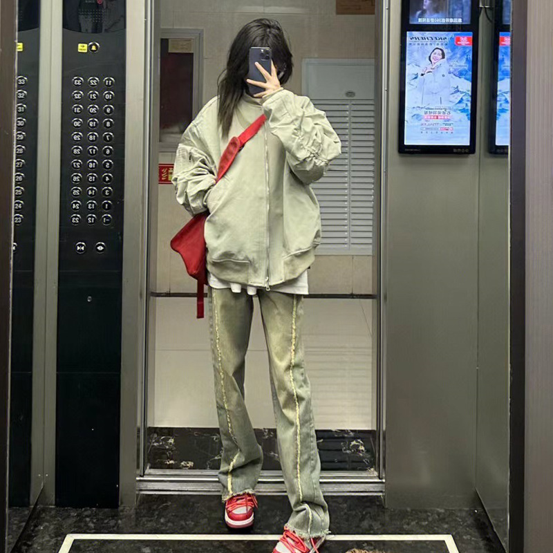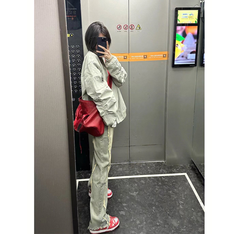 Phong cách Mỹ kết cấu tiên tiến phù hợp với chuyến bay phù hợp với áo khoác mùa xuân của phụ nữ mùa thu thiết kế lỏng trung tính dụng cụ lót áo khoác đồng phục bóng chày