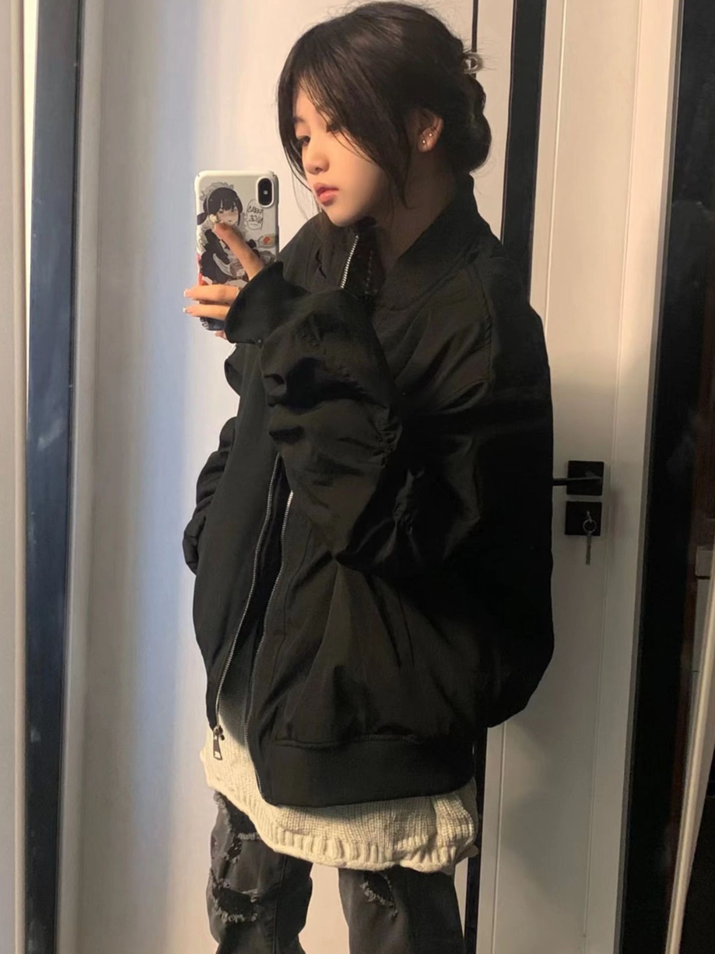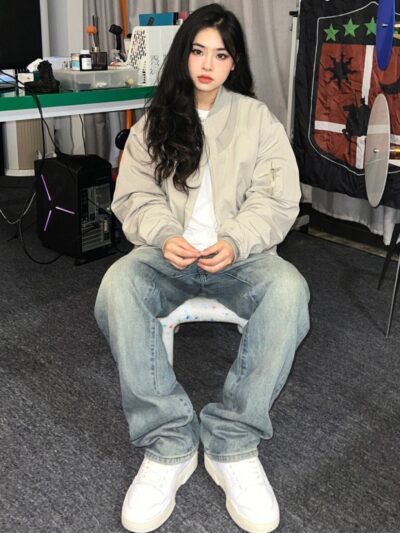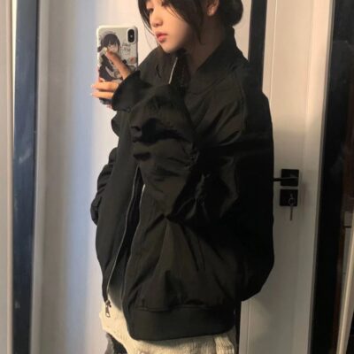 Phong cách Mỹ kết cấu tiên tiến phù hợp với chuyến bay phù hợp với áo khoác mùa xuân của phụ nữ mùa thu thiết kế lỏng trung tính dụng cụ lót áo khoác đồng phục bóng chày