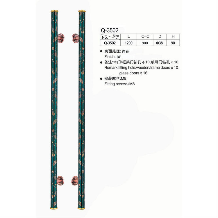 Mã sản phẩm: Q-3502 Thương hiệu: Qianxin Màu sắc: In lụa Chất liệu: Thép không gỉ Kiểu máy: Q-3502 Xử lý bề mặt: In lụa Thông số kỹ thuật: φ38×1200 Xử lý và tùy chỉnh: Có hoặc không Xuất khẩu xuyên biên giới Nguồn cung cấp đặc biệt: Không có sản phẩm Ứng dụng: Khung cửa gỗ Cửa kính Phong cách: Mỹ/Trung Quốc mới/Hiện đại và đơn giản/Sang trọng nhẹ nhàng/Sang trọng nhẹ nhàng