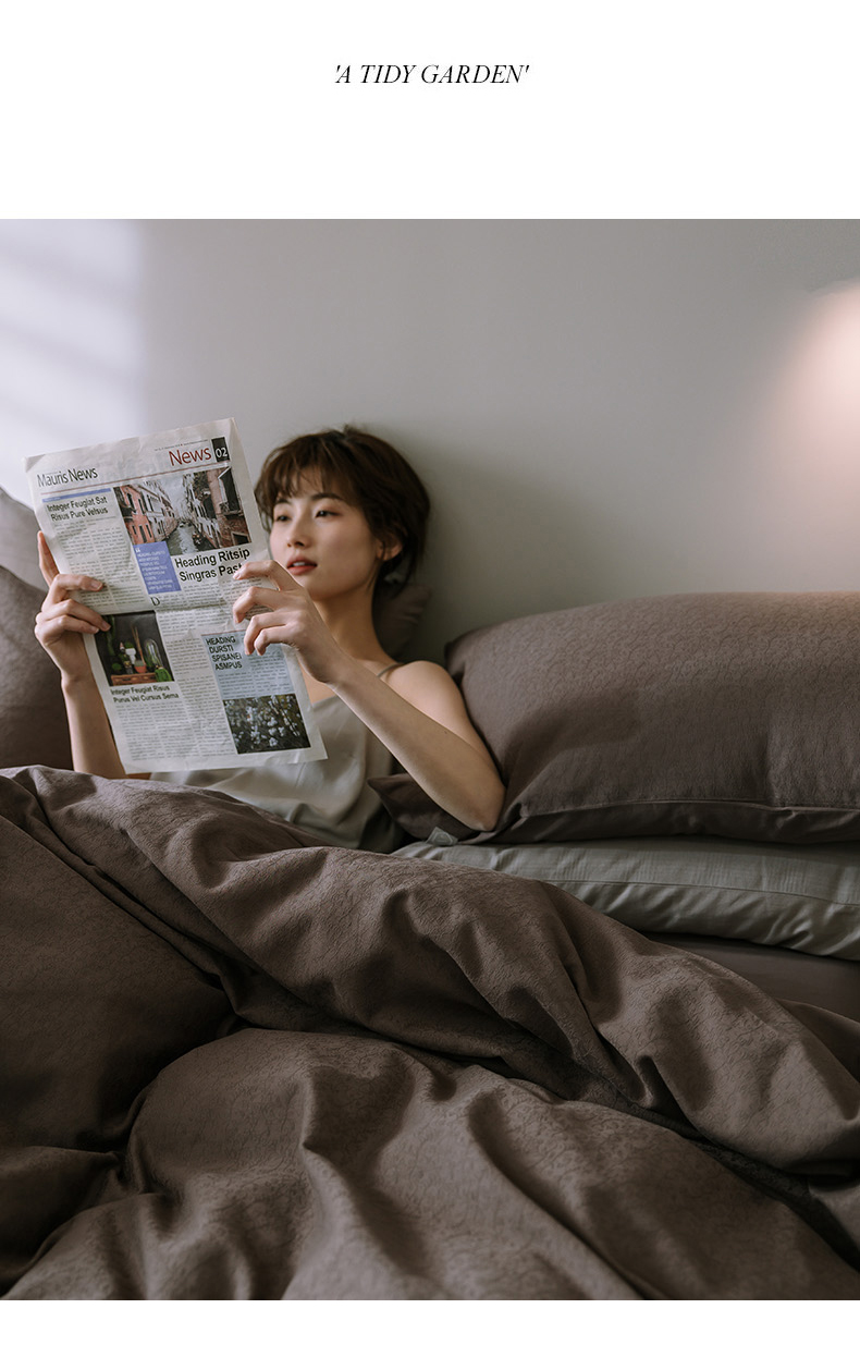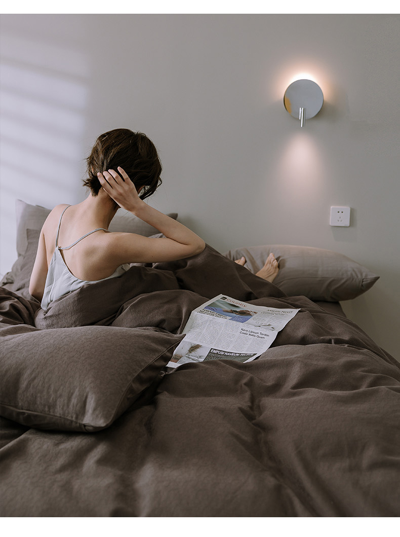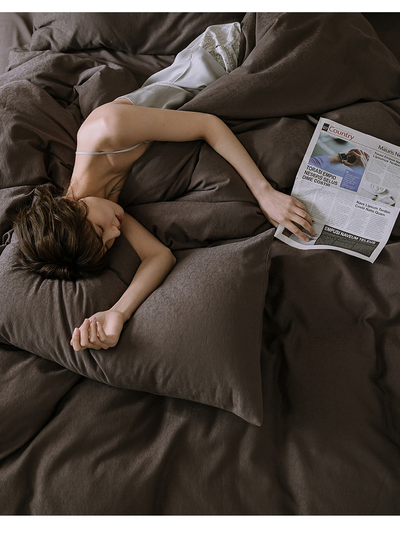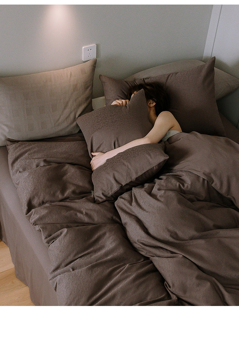 Phong cách Nhật Bản đơn giản không in những năm 60s cotton giặt bộ bốn mảnh 1,5m1,8m giường Bộ đồ giường cotton jacquard