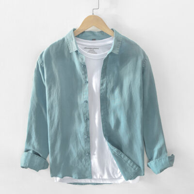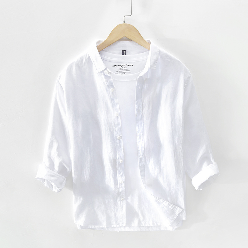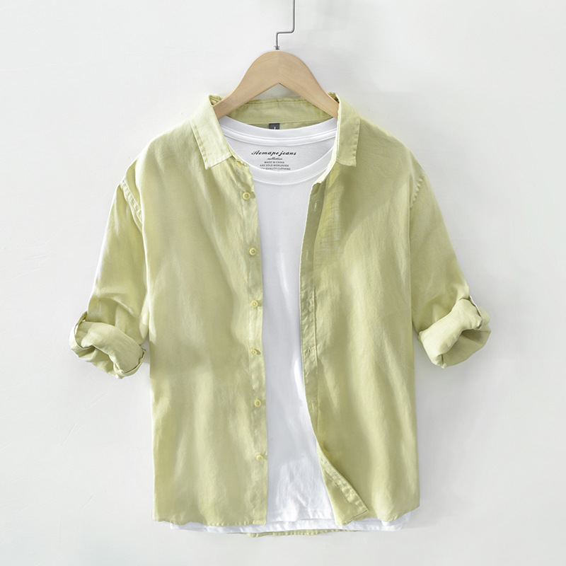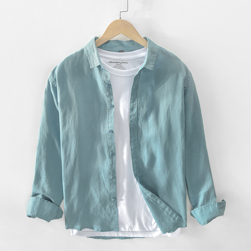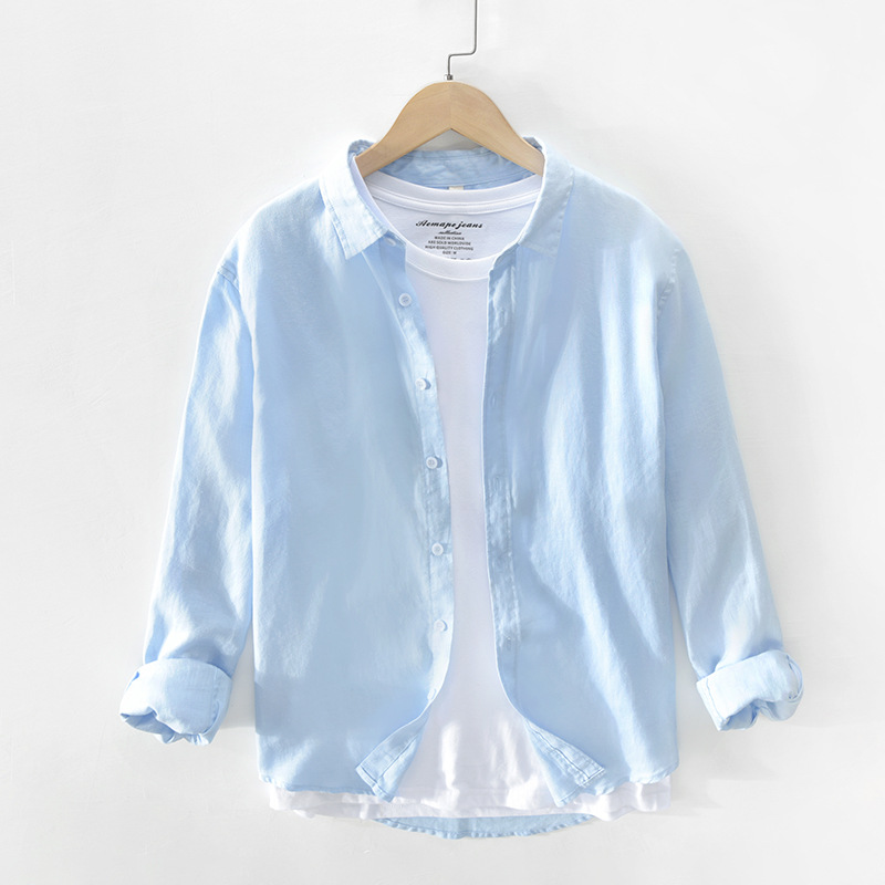 Phong Cách Nhật Bản Mới Dài Tay Vải Lanh Nam Thoáng Khí Trẻ Trung Dáng Rộng Áo Sơ Mi Nam Một Mảnh Giao Hàng 610