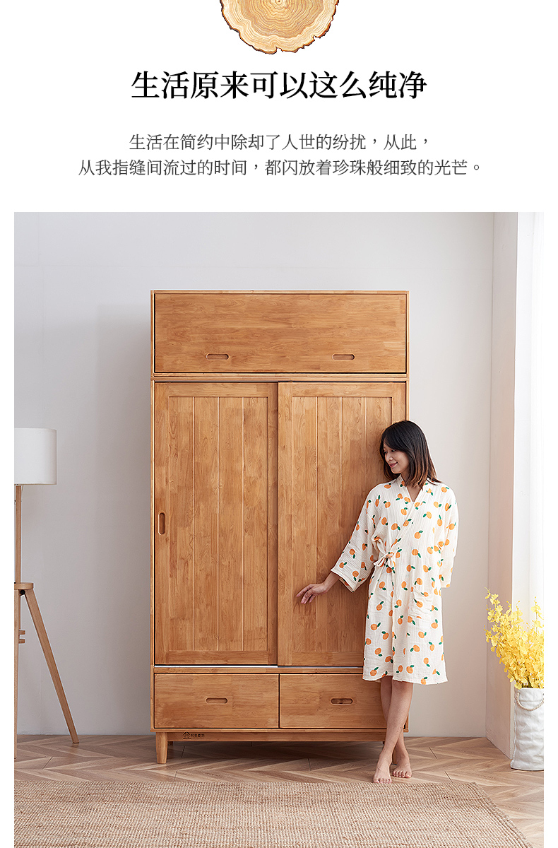 Phong cách Nhật Bản tủ quần áo gỗ nguyên khối gỗ bách tủ quần áo cửa trượt phòng ngủ trẻ em cửa trượt gỗ nội thất căn hộ nhỏ kiểu Bắc Âu