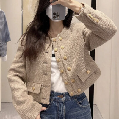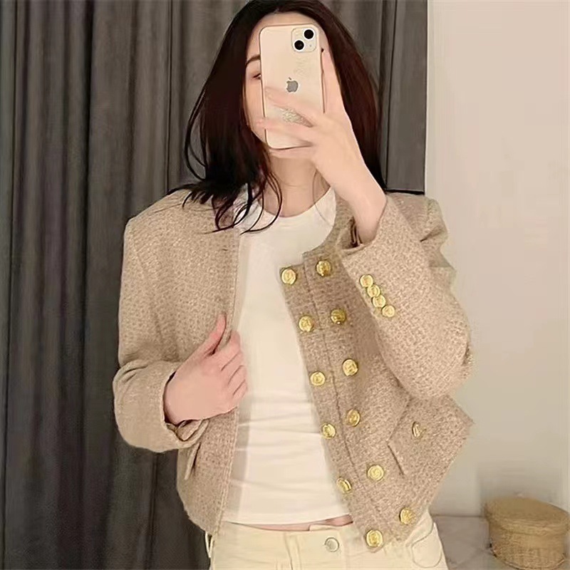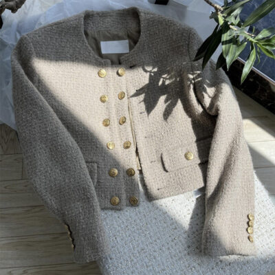 Phong Cách Pháp Đôi Len Tính Khí Hương Thơm Ngắn Áo Khoác Nữ Thu Đông 2023 Retro Vải Tweed Áo Khoác Cardigan