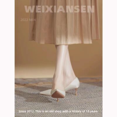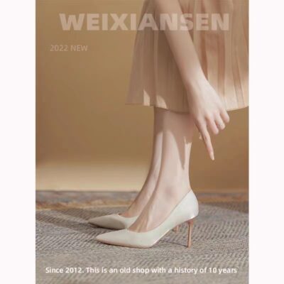 Phong Cách Pháp Giày Cao Gót Mũi Nhọn Đế Đơn Giày Nữ Đơn Giản Giày Cô Dâu Màu Trắng Phù Dâu Giày Cưới Nữ