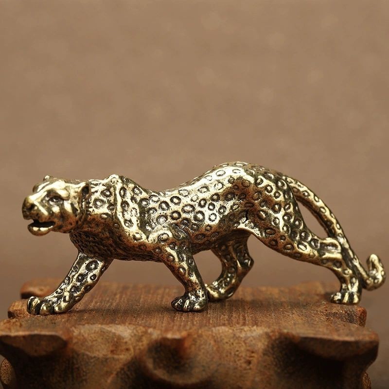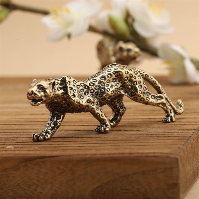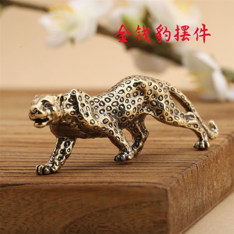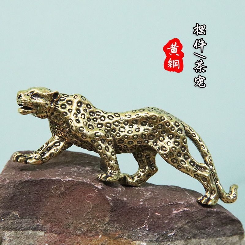 Phong cách retro sáng tạo bằng đồng thau nguyên chất da báo trang trí bàn làm việc đồ trang sức bằng đồng cổ để chơi với các bộ sưu tập