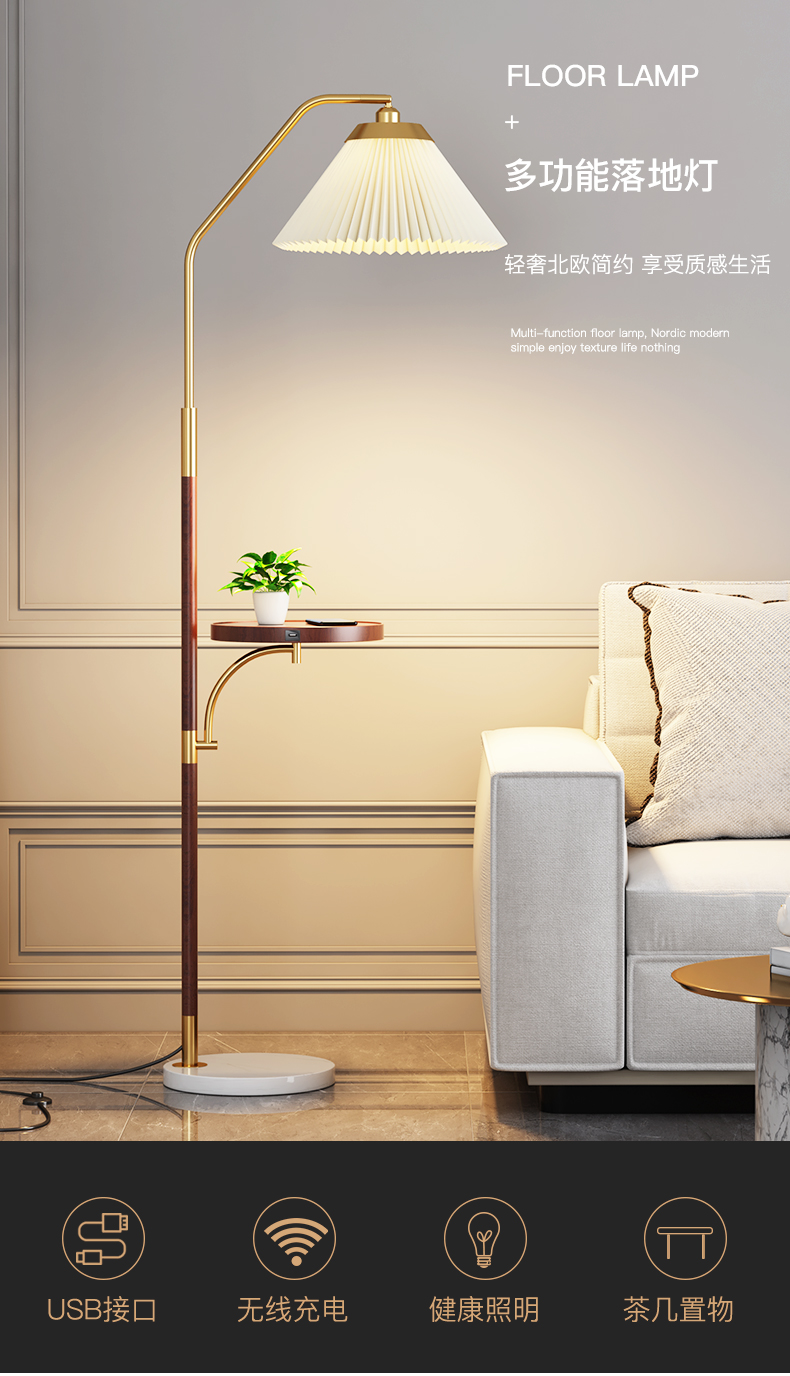 Phong cách retro xếp li Ánh sáng kiểu Mỹ sang trọng đèn sàn phòng khách gỗ rắn đầu giường phòng ngủ phòng ngủ lưu trữ bàn cà phê bàn đèn đứng